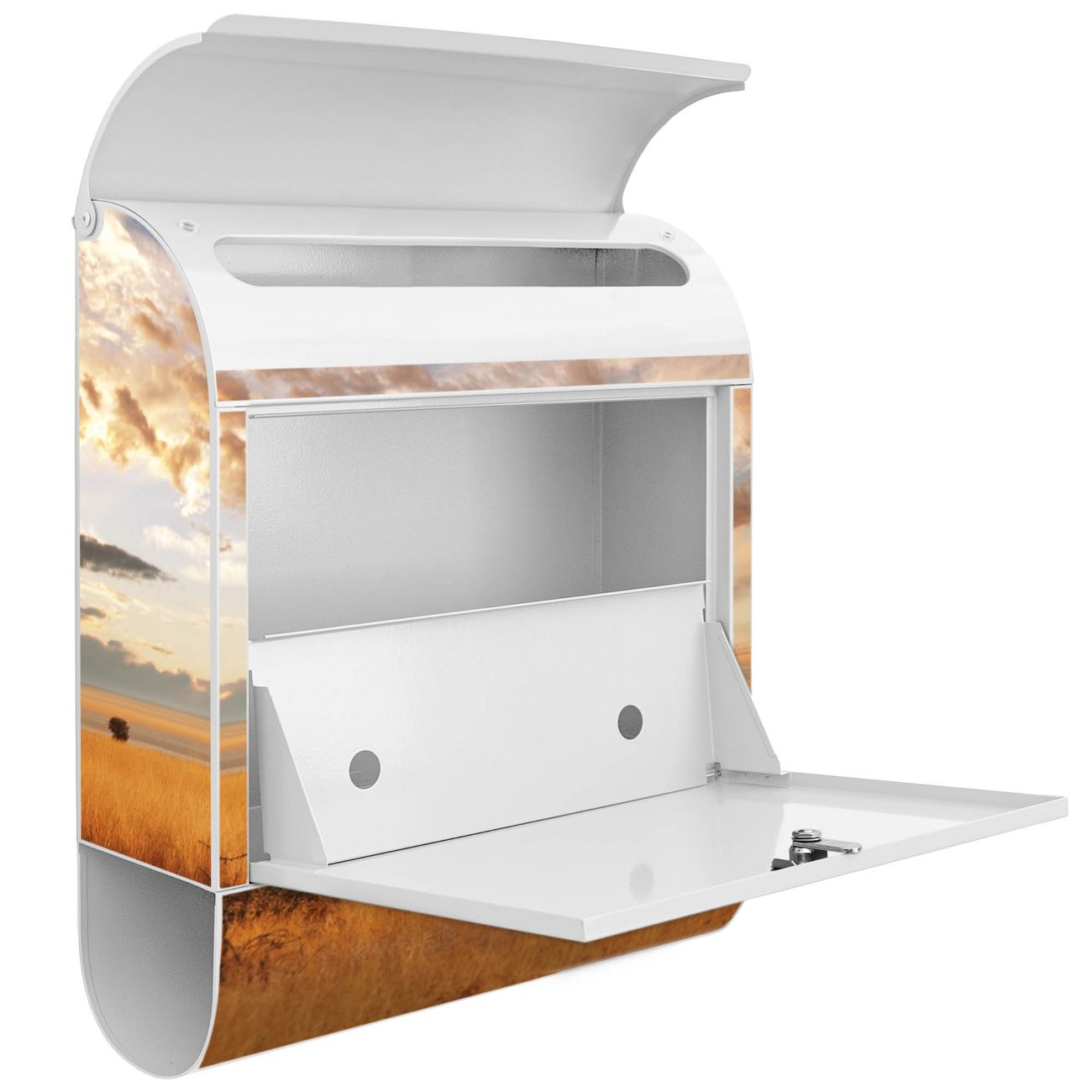 Der Standbriefkasten besteht aus pulverbeschichtetem Stahl und ist insgesamt ca. 161,5 x 47 x 16 cm groß. Das Motiv wird auf eine wetter- und UV-beständige Folie aufgebracht und mit einem robusten Schutzlaminat versiegelt. Damit bleibt die Farbbrillanz auch bei Sonne und Regen lange erhalten. Für einen sicheren Halt empfehlen wir, den Standbriefkasten mindestens 15 cm einzubetonieren. Jeder Briefkasten wird in Sachsen in einer kleinen Manufaktur von Hand veredelt - Sie erhalten ein Stück langlebige Handarbeit, das Funktionalität und Design vereint.