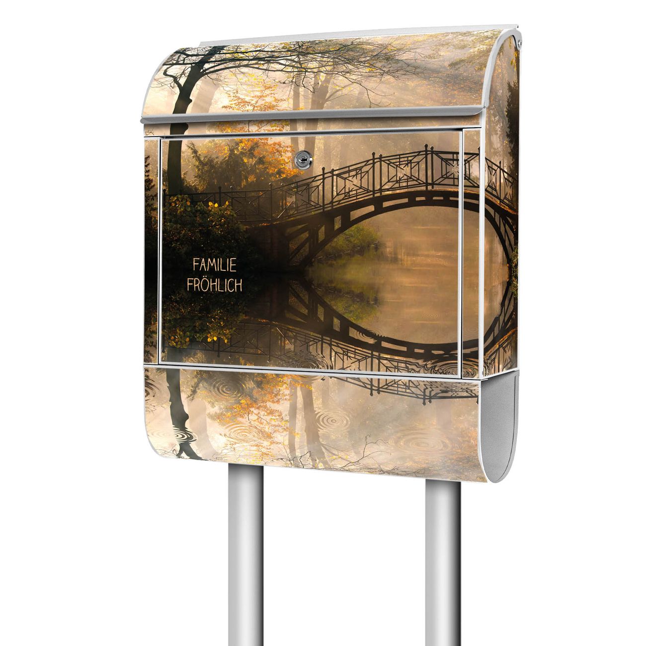 Der Standbriefkasten besteht aus pulverbeschichtetem Stahl und ist insgesamt ca. 161,5 x 47 x 16 cm groß. Das Motiv wird auf eine wetter- und UV-beständige Folie aufgebracht und mit einem robusten Schutzlaminat versiegelt. Damit bleibt die Farbbrillanz auch bei Sonne und Regen lange erhalten. Für einen sicheren Halt empfehlen wir, den Standbriefkasten mindestens 15 cm einzubetonieren. Jeder Briefkasten wird in Sachsen in einer kleinen Manufaktur von Hand veredelt - Sie erhalten ein Stück langlebige Handarbeit, das Funktionalität und Design vereint.