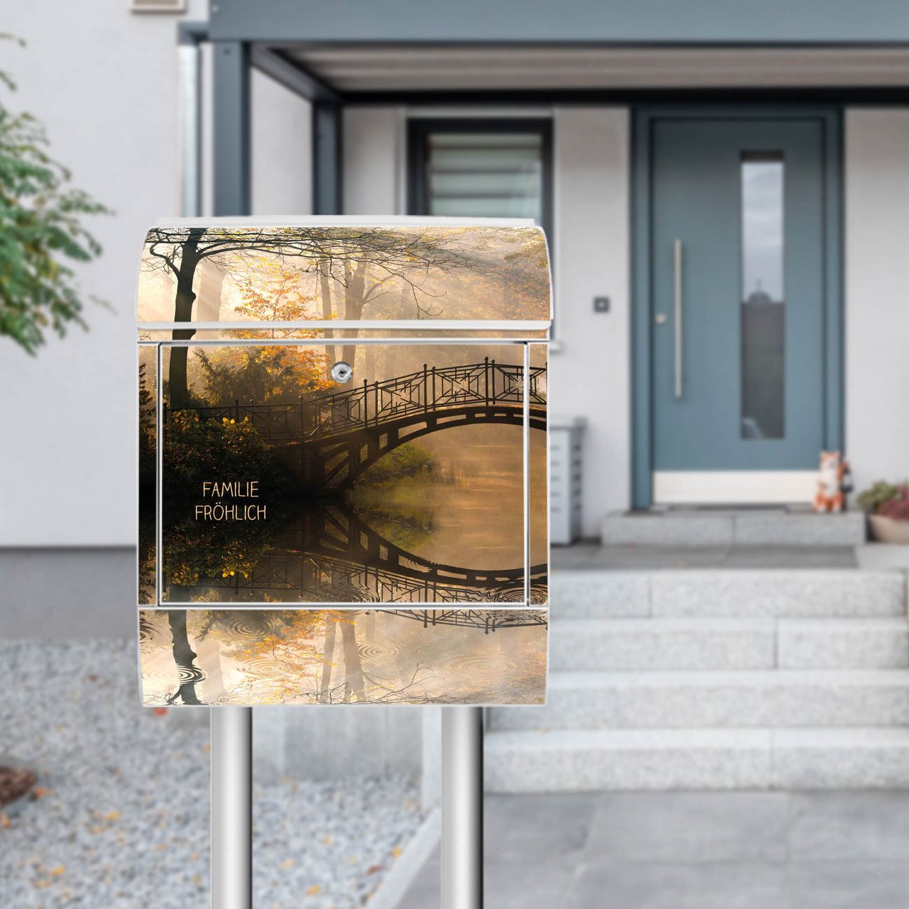 Der Vorschau-Text Familie Fröhlich wird durch Ihren persönlichen Wunschtext ersetzt. Die Schriftart und Farbe bleiben gleich wie in der Vorschau.