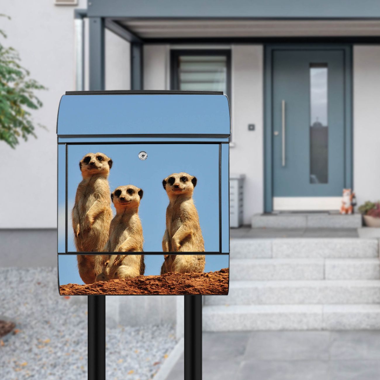 Standbriefkasten Stahl Erdmännchenfamilie