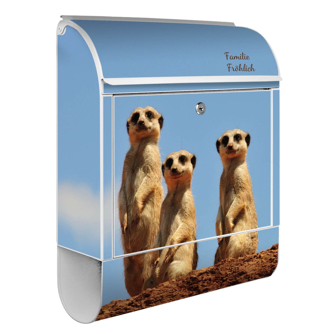 Der banjado Standbriefkasten mit Motiv Motiv Erdmännchenfamilie kombiniert großzügigen Stauraum mit modernem Design. Durch das geräumige Fach finden auch große A4-Sendungen problemlos Platz. Die integrierte Zeitungsrolle sorgt dafür, dass Tageszeitungen und Magazine separat und griffbereit untergebracht sind. Der pulverbeschichtete Standfuß ist farblich passend zum Briefkasten gestaltet und sorgt für ein stimmiges Gesamtbild. Mit dem individuellen Motiv setzen Sie einen optischen Akzent, der sowohl praktisch als auch dekorativ ist.