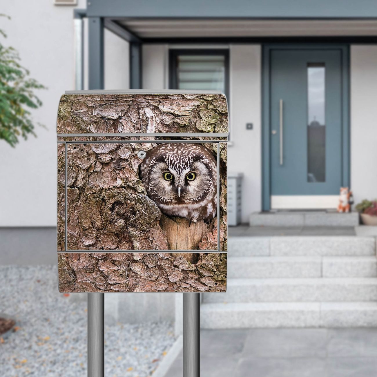 Der banjado Standbriefkasten mit Motiv Motiv Eule kombiniert großzügigen Stauraum mit modernem Design. Durch das geräumige Fach finden auch große A4-Sendungen problemlos Platz. Die integrierte Zeitungsrolle sorgt dafür, dass Tageszeitungen und Magazine separat und griffbereit untergebracht sind. Der pulverbeschichtete Standfuß ist farblich passend zum Briefkasten gestaltet und sorgt für ein stimmiges Gesamtbild. Mit dem individuellen Motiv setzen Sie einen optischen Akzent, der sowohl praktisch als auch dekorativ ist.