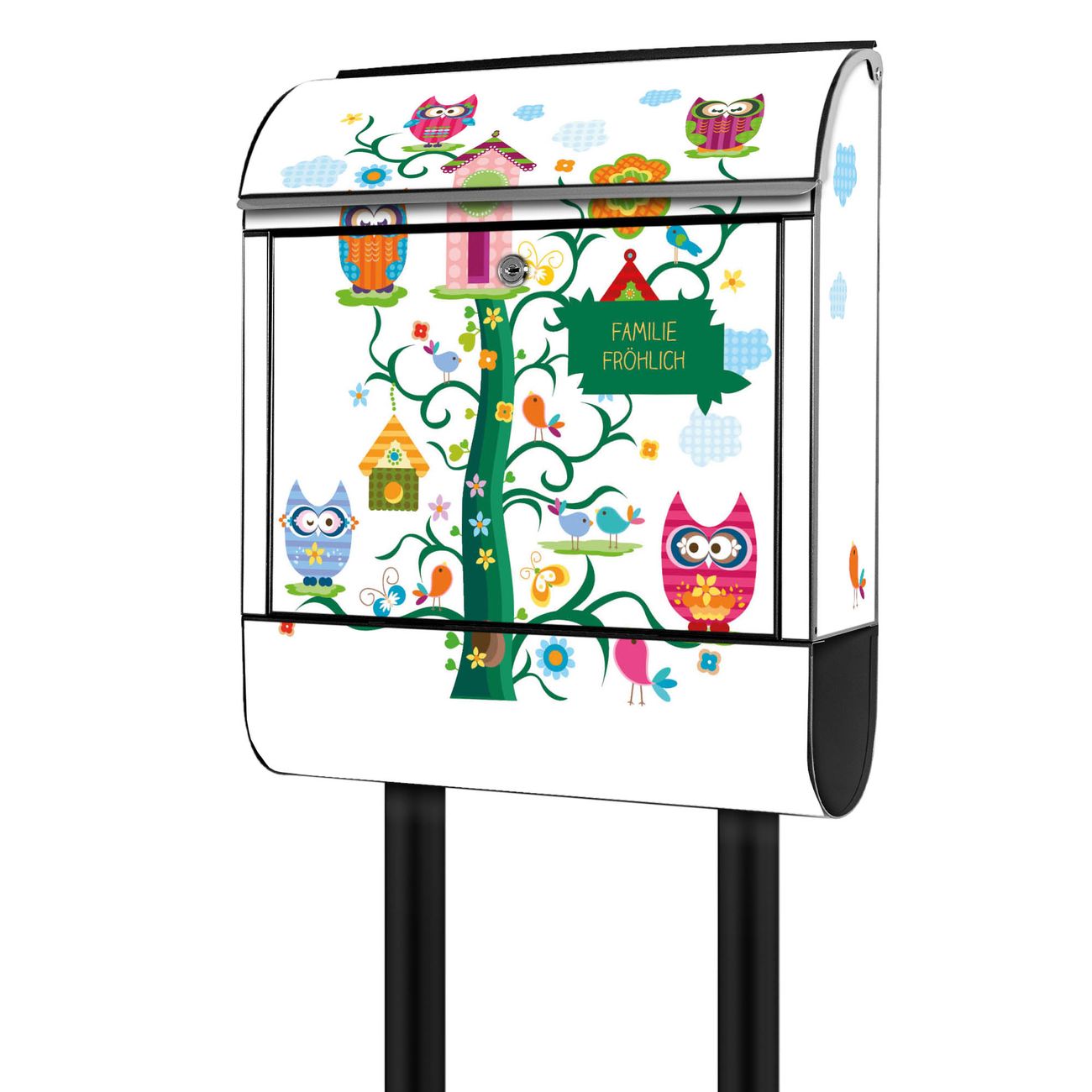 Standbriefkasten Stahl Eulenfamilie