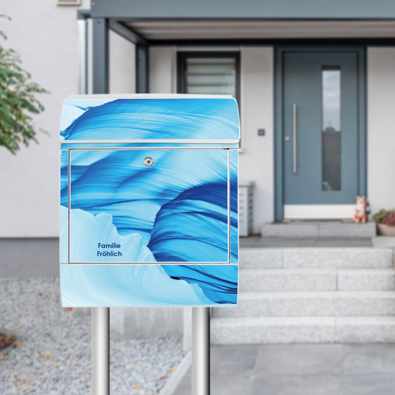 Der Standbriefkasten besteht aus pulverbeschichtetem Stahl und ist insgesamt ca. 161,5 x 47 x 16 cm groß. Das Motiv wird auf eine wetter- und UV-beständige Folie aufgebracht und mit einem robusten Schutzlaminat versiegelt. Damit bleibt die Farbbrillanz auch bei Sonne und Regen lange erhalten. Für einen sicheren Halt empfehlen wir, den Standbriefkasten mindestens 15 cm einzubetonieren. Jeder Briefkasten wird in Sachsen in einer kleinen Manufaktur von Hand veredelt - Sie erhalten ein Stück langlebige Handarbeit, das Funktionalität und Design vereint.