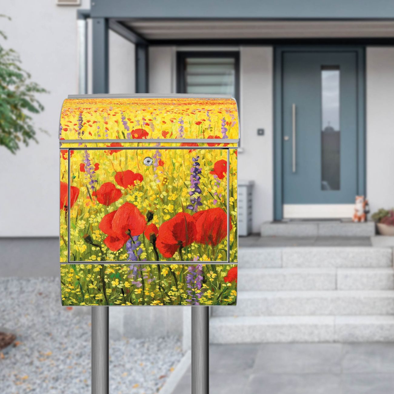 Standbriefkasten Stahl Feld Mit Mohnblumen