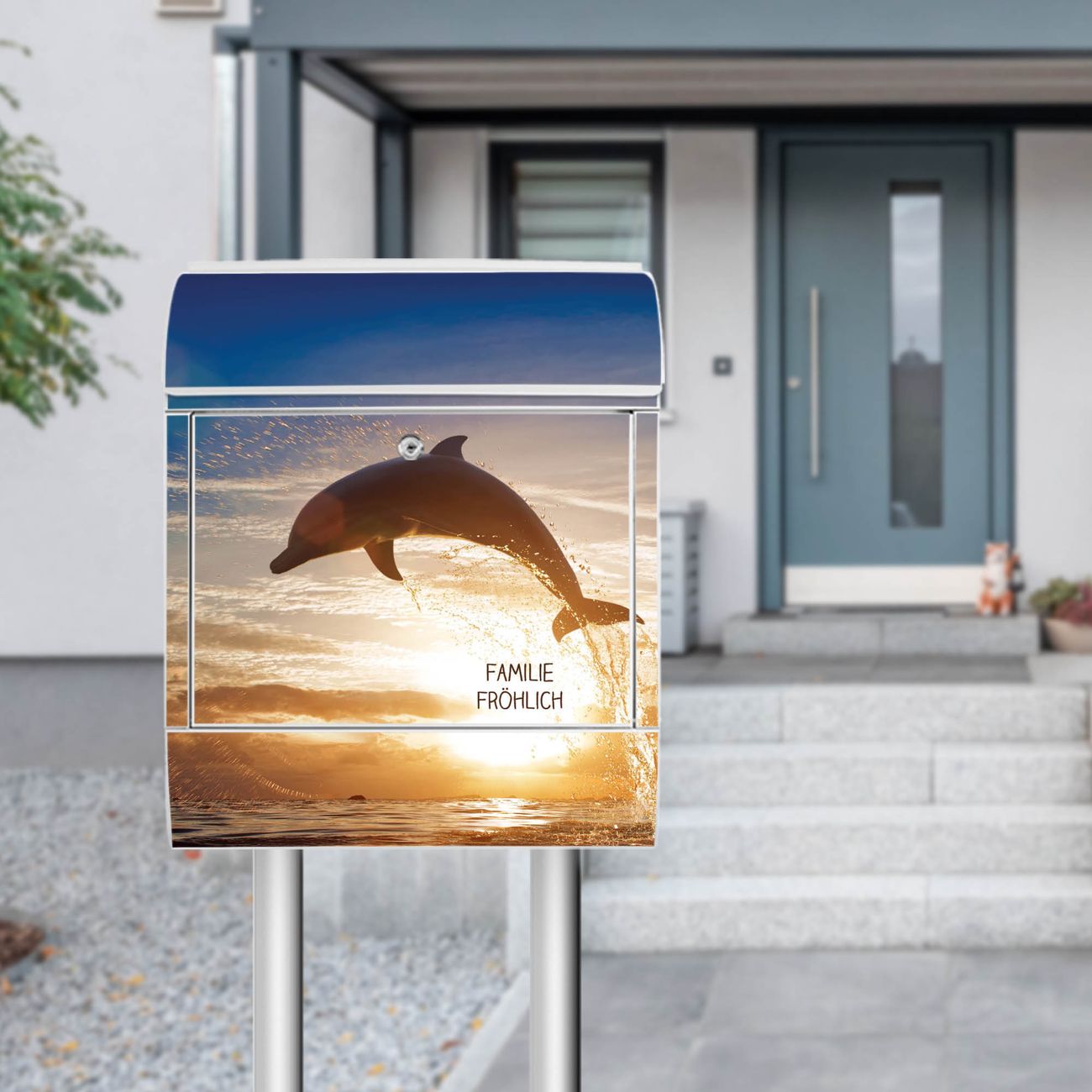 Der Vorschau-Text Familie Fröhlich wird durch Ihren persönlichen Wunschtext ersetzt. Die Schriftart und Farbe bleiben gleich wie in der Vorschau.