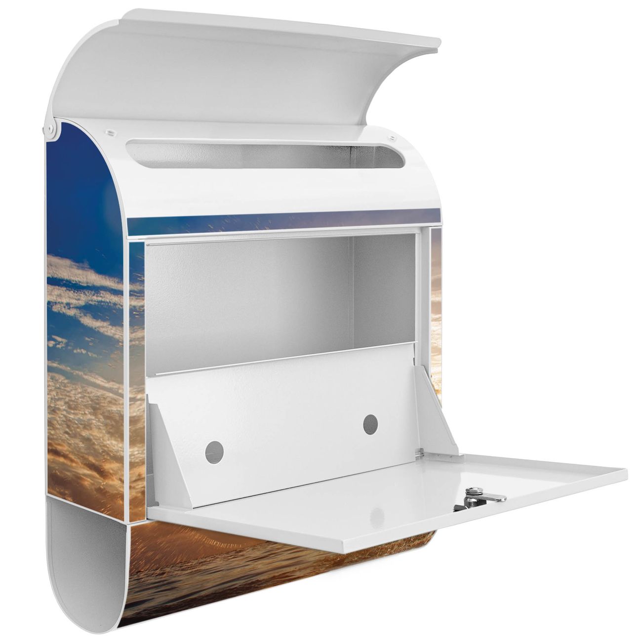 Der Standbriefkasten besteht aus pulverbeschichtetem Stahl und ist insgesamt ca. 161,5 x 47 x 16 cm groß. Das Motiv wird auf eine wetter- und UV-beständige Folie aufgebracht und mit einem robusten Schutzlaminat versiegelt. Damit bleibt die Farbbrillanz auch bei Sonne und Regen lange erhalten. Für einen sicheren Halt empfehlen wir, den Standbriefkasten mindestens 15 cm einzubetonieren. Jeder Briefkasten wird in Sachsen in einer kleinen Manufaktur von Hand veredelt - Sie erhalten ein Stück langlebige Handarbeit, das Funktionalität und Design vereint.