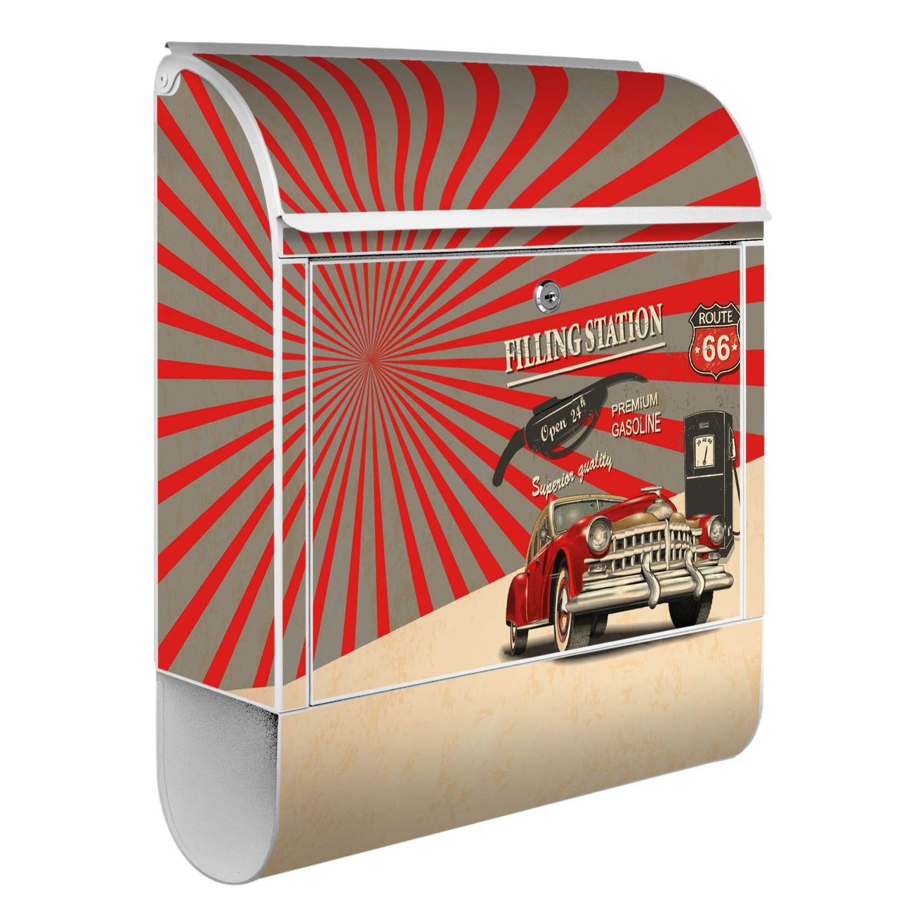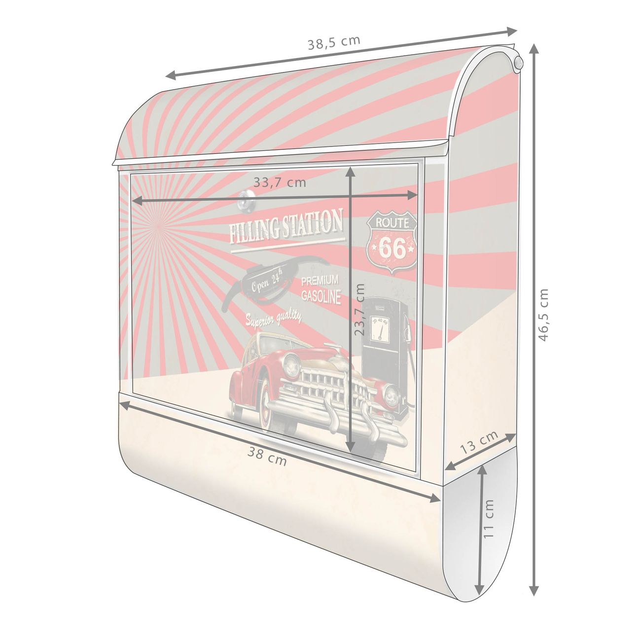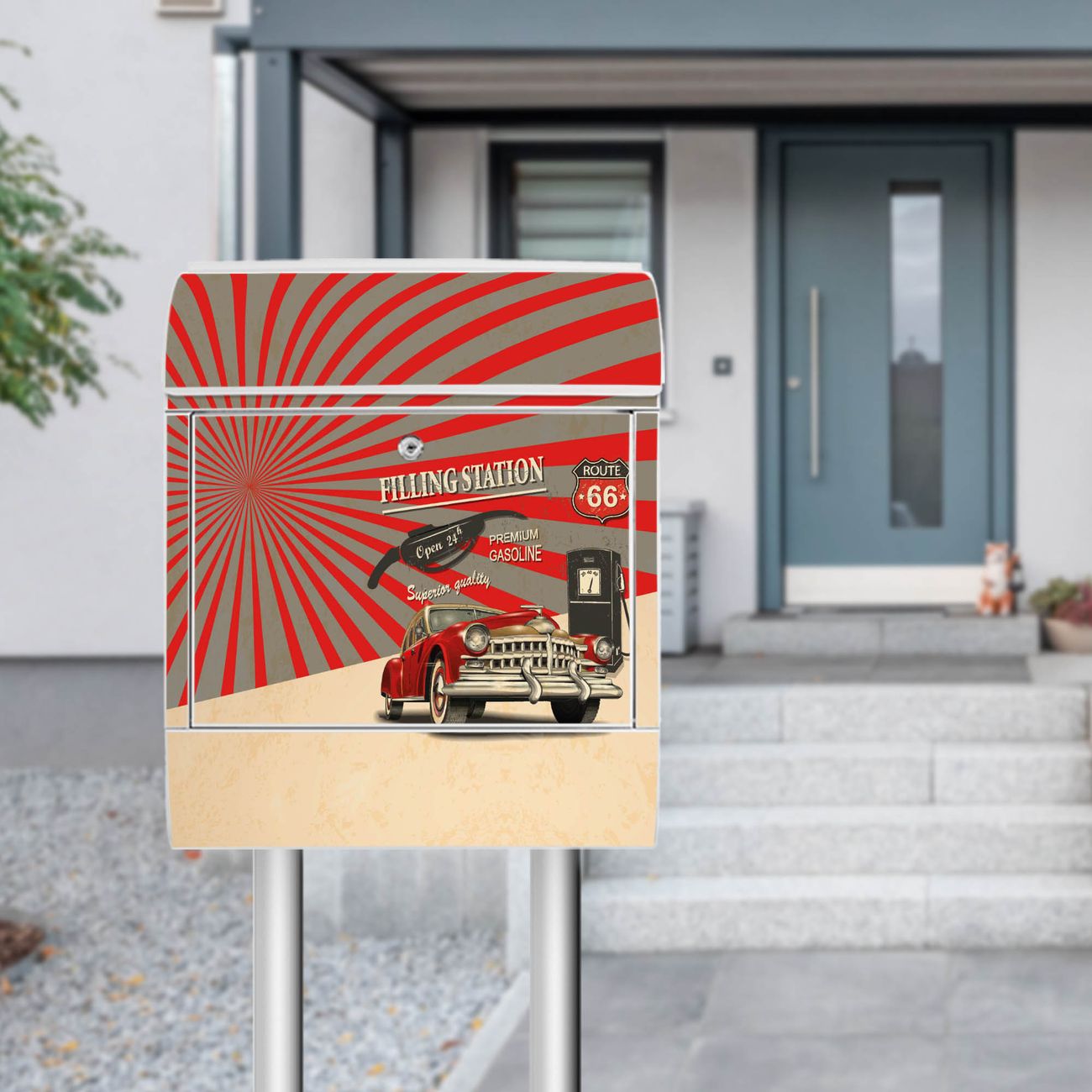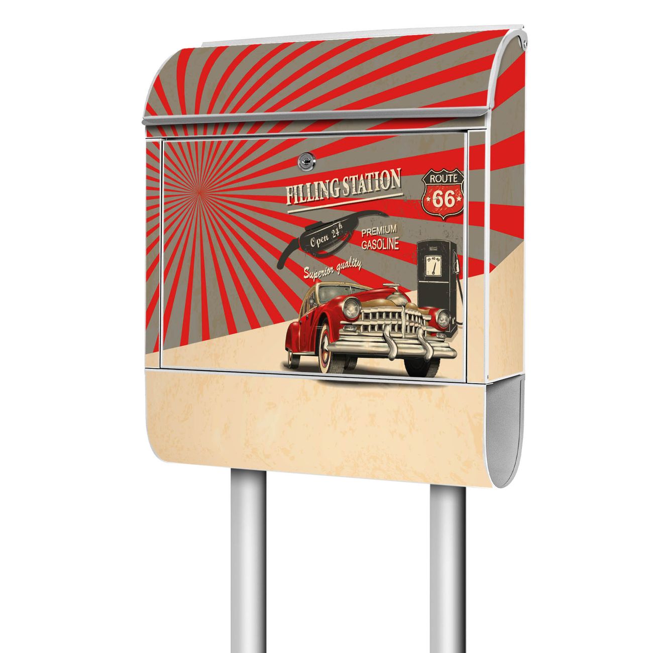 Der banjado Standbriefkasten mit Motiv Motiv Filling Station kombiniert großzügigen Stauraum mit modernem Design. Durch das geräumige Fach finden auch große A4-Sendungen problemlos Platz. Die integrierte Zeitungsrolle sorgt dafür, dass Tageszeitungen und Magazine separat und griffbereit untergebracht sind. Der pulverbeschichtete Standfuß ist farblich passend zum Briefkasten gestaltet und sorgt für ein stimmiges Gesamtbild. Mit dem individuellen Motiv setzen Sie einen optischen Akzent, der sowohl praktisch als auch dekorativ ist.