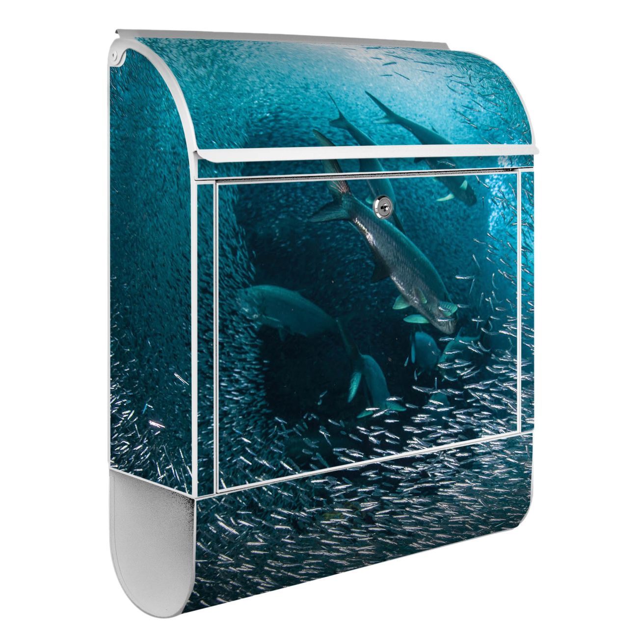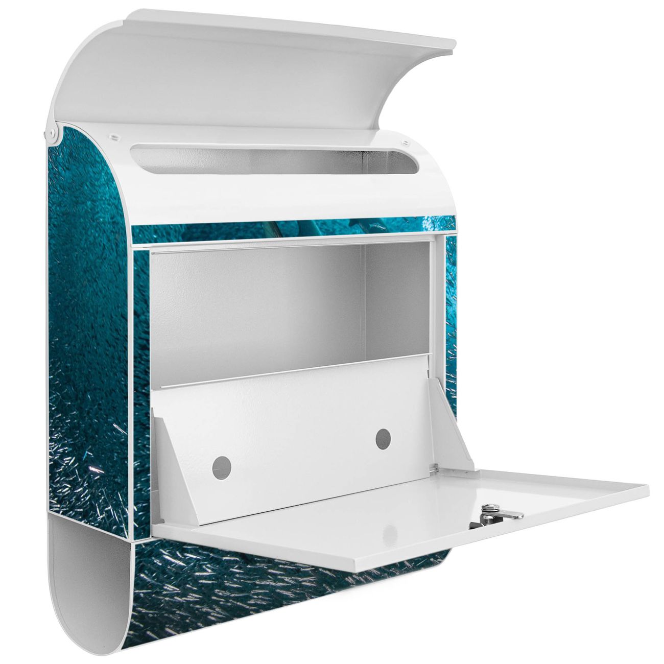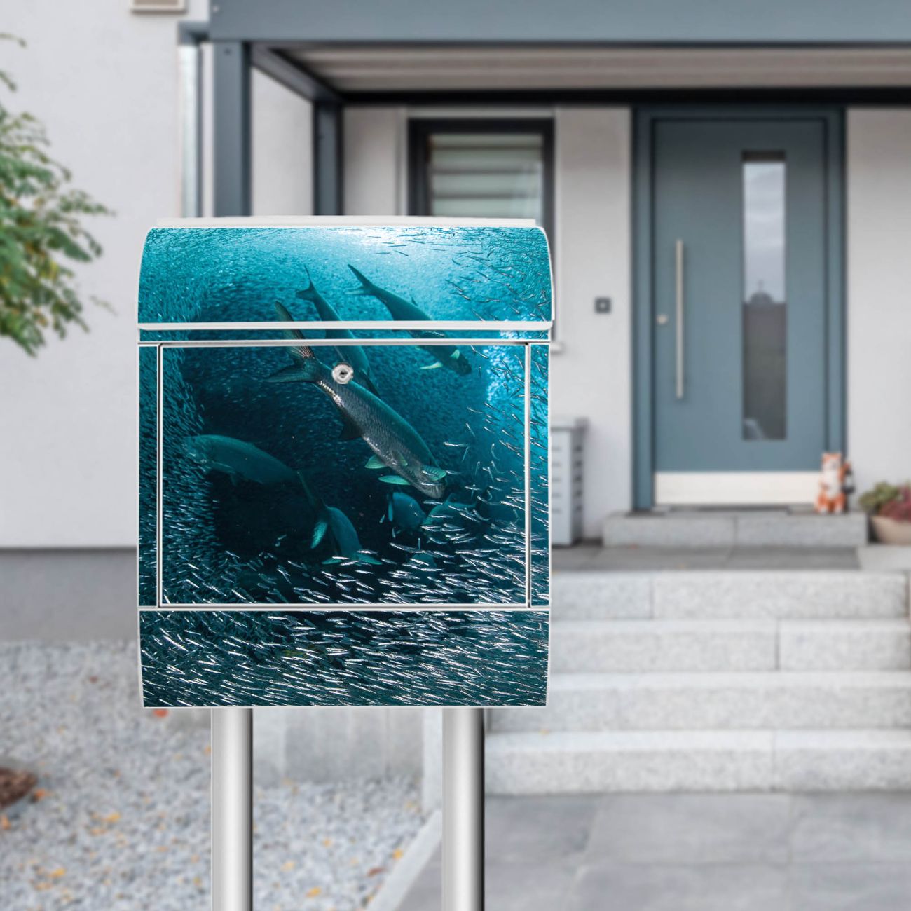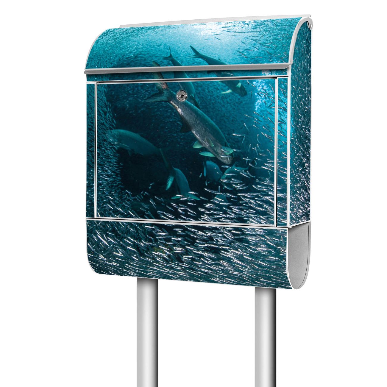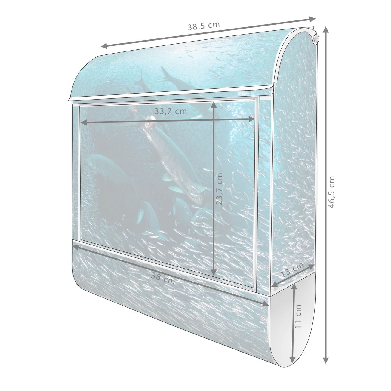 Der banjado Standbriefkasten mit Motiv Motiv Fische im Meer kombiniert großzügigen Stauraum mit modernem Design. Durch das geräumige Fach finden auch große A4-Sendungen problemlos Platz. Die integrierte Zeitungsrolle sorgt dafür, dass Tageszeitungen und Magazine separat und griffbereit untergebracht sind. Der pulverbeschichtete Standfuß ist farblich passend zum Briefkasten gestaltet und sorgt für ein stimmiges Gesamtbild. Mit dem individuellen Motiv setzen Sie einen optischen Akzent, der sowohl praktisch als auch dekorativ ist.