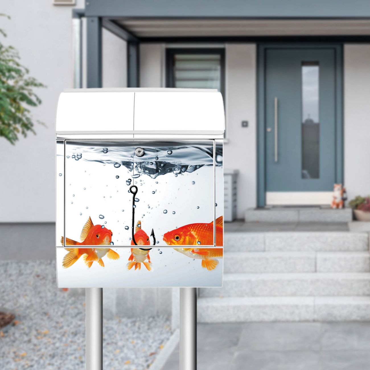 Der banjado Standbriefkasten mit Motiv Motiv Fische kombiniert großzügigen Stauraum mit modernem Design. Durch das geräumige Fach finden auch große A4-Sendungen problemlos Platz. Die integrierte Zeitungsrolle sorgt dafür, dass Tageszeitungen und Magazine separat und griffbereit untergebracht sind. Der pulverbeschichtete Standfuß ist farblich passend zum Briefkasten gestaltet und sorgt für ein stimmiges Gesamtbild. Mit dem individuellen Motiv setzen Sie einen optischen Akzent, der sowohl praktisch als auch dekorativ ist.