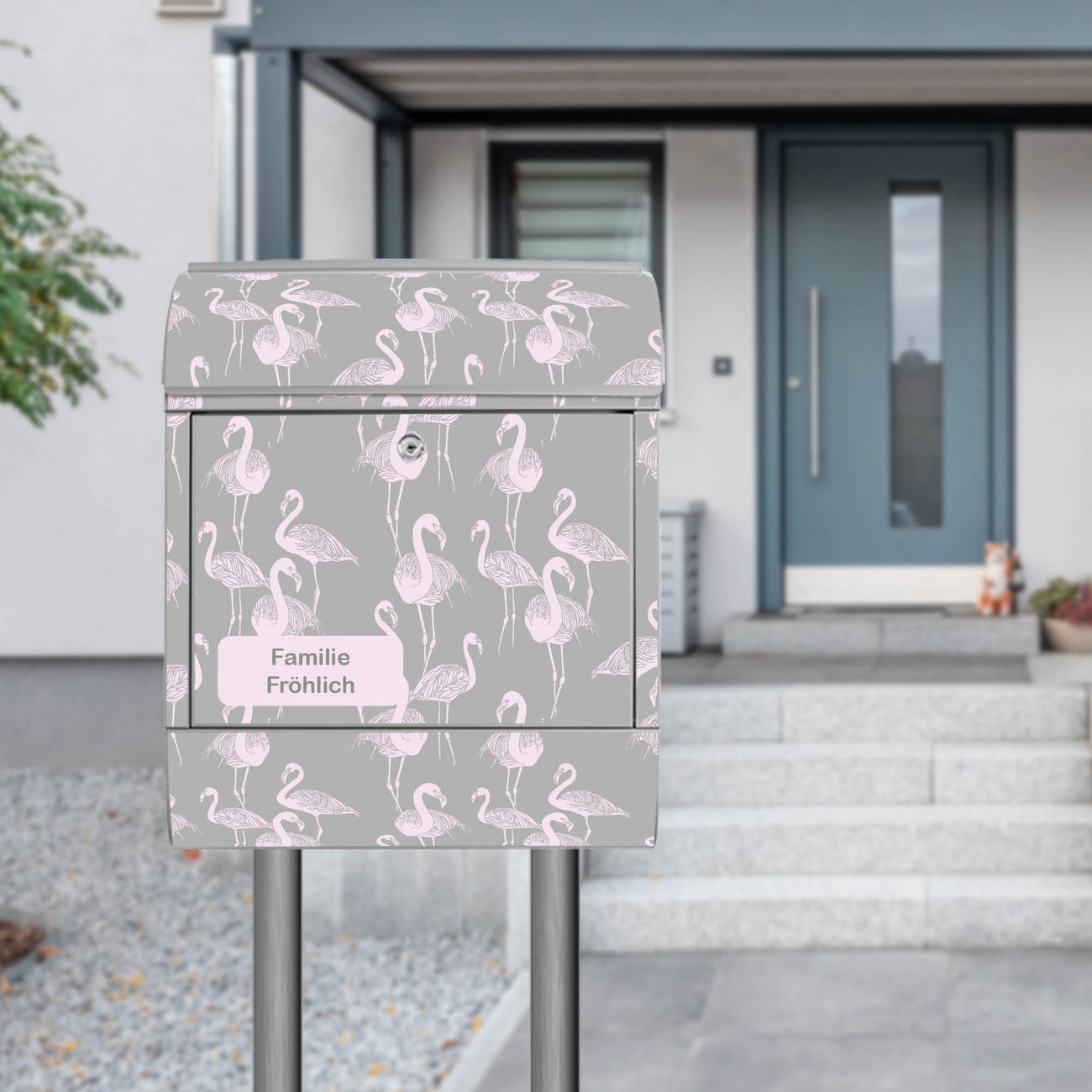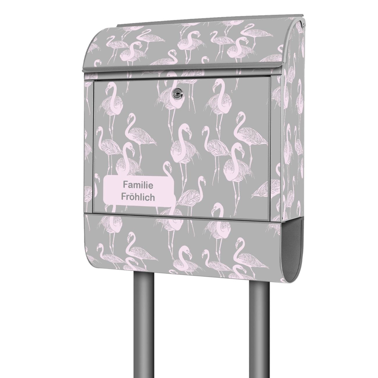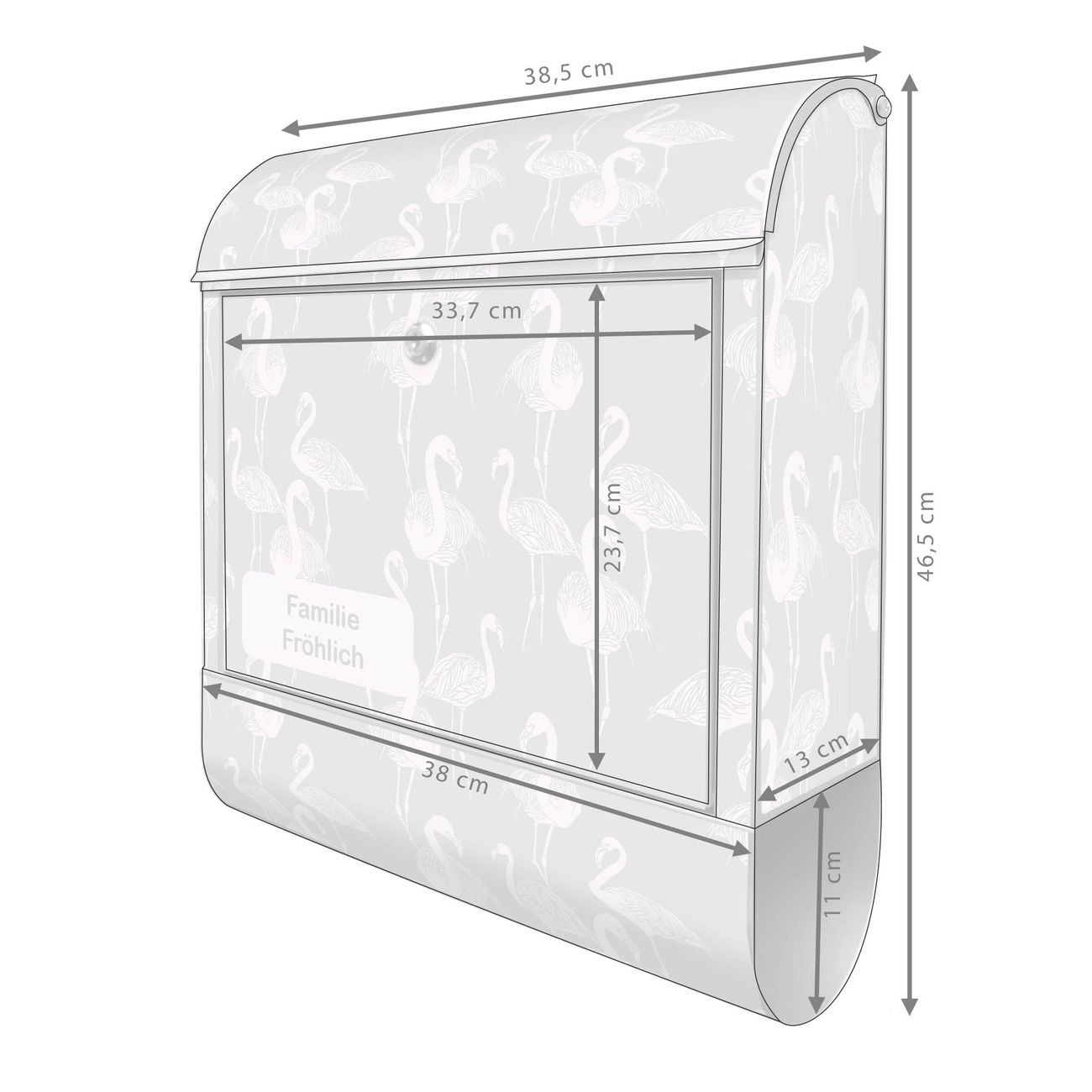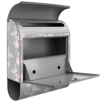 Der banjado Standbriefkasten mit Motiv Motiv Flamingos Blass kombiniert großzügigen Stauraum mit modernem Design. Durch das geräumige Fach finden auch große A4-Sendungen problemlos Platz. Die integrierte Zeitungsrolle sorgt dafür, dass Tageszeitungen und Magazine separat und griffbereit untergebracht sind. Der pulverbeschichtete Standfuß ist farblich passend zum Briefkasten gestaltet und sorgt für ein stimmiges Gesamtbild. Mit dem individuellen Motiv setzen Sie einen optischen Akzent, der sowohl praktisch als auch dekorativ ist.