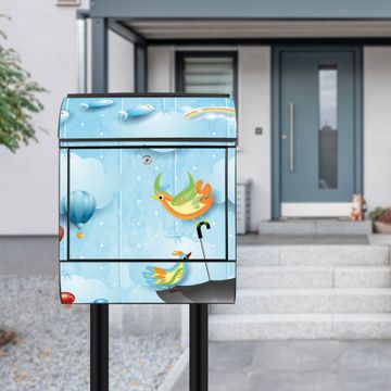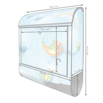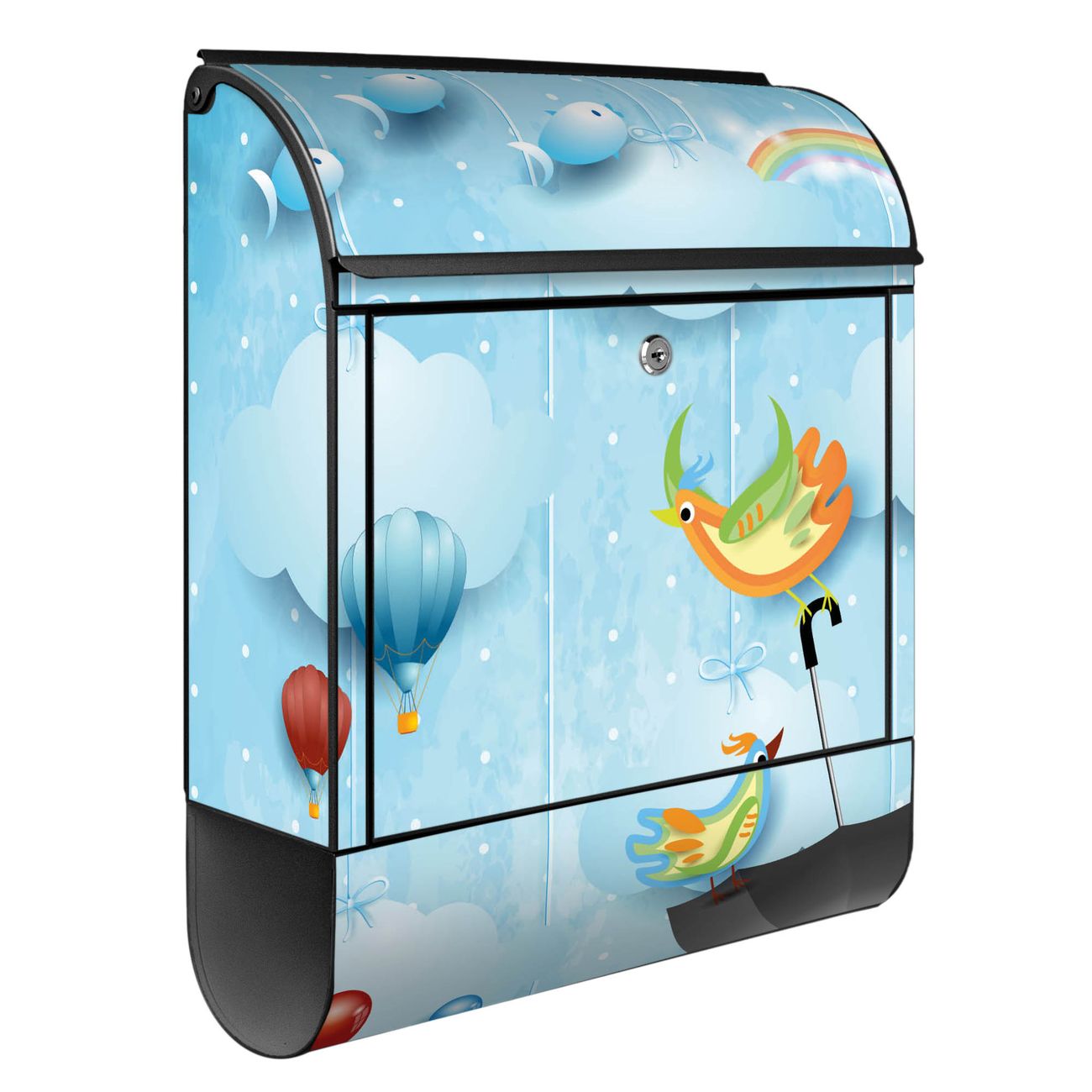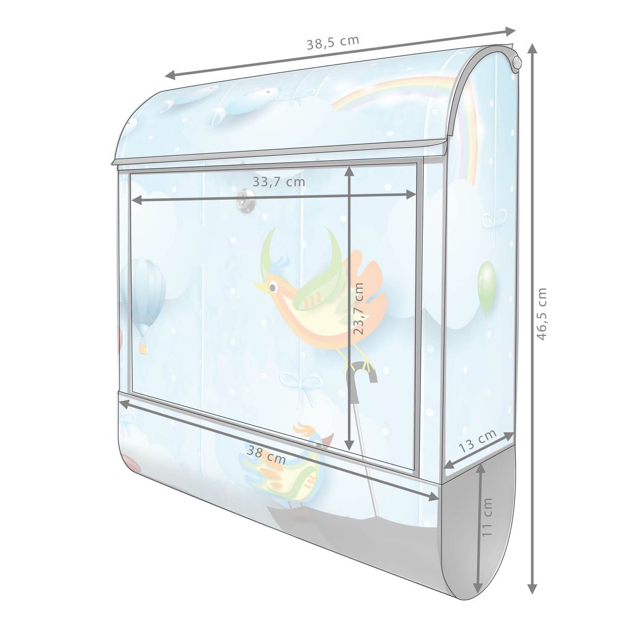Der banjado Standbriefkasten mit Motiv Motiv fliegender Regenschirm kombiniert großzügigen Stauraum mit modernem Design. Durch das geräumige Fach finden auch große A4-Sendungen problemlos Platz. Die integrierte Zeitungsrolle sorgt dafür, dass Tageszeitungen und Magazine separat und griffbereit untergebracht sind. Der pulverbeschichtete Standfuß ist farblich passend zum Briefkasten gestaltet und sorgt für ein stimmiges Gesamtbild. Mit dem individuellen Motiv setzen Sie einen optischen Akzent, der sowohl praktisch als auch dekorativ ist.