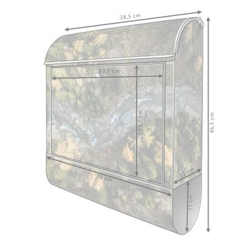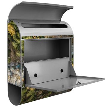Der banjado Standbriefkasten mit Motiv Motiv Fluss im Tal 2 kombiniert großzügigen Stauraum mit modernem Design. Durch das geräumige Fach finden auch große A4-Sendungen problemlos Platz. Die integrierte Zeitungsrolle sorgt dafür, dass Tageszeitungen und Magazine separat und griffbereit untergebracht sind. Der pulverbeschichtete Standfuß ist farblich passend zum Briefkasten gestaltet und sorgt für ein stimmiges Gesamtbild. Mit dem individuellen Motiv setzen Sie einen optischen Akzent, der sowohl praktisch als auch dekorativ ist.
