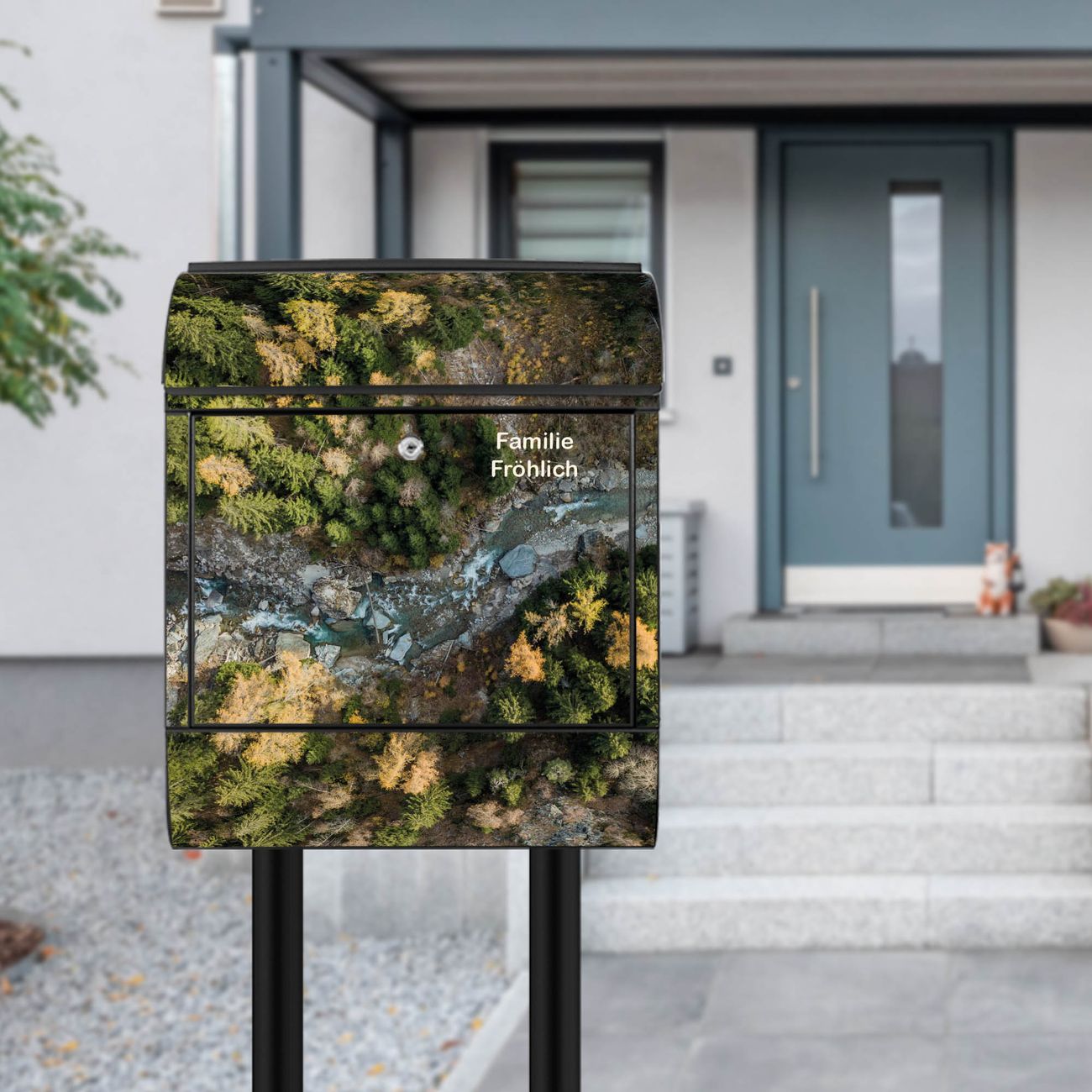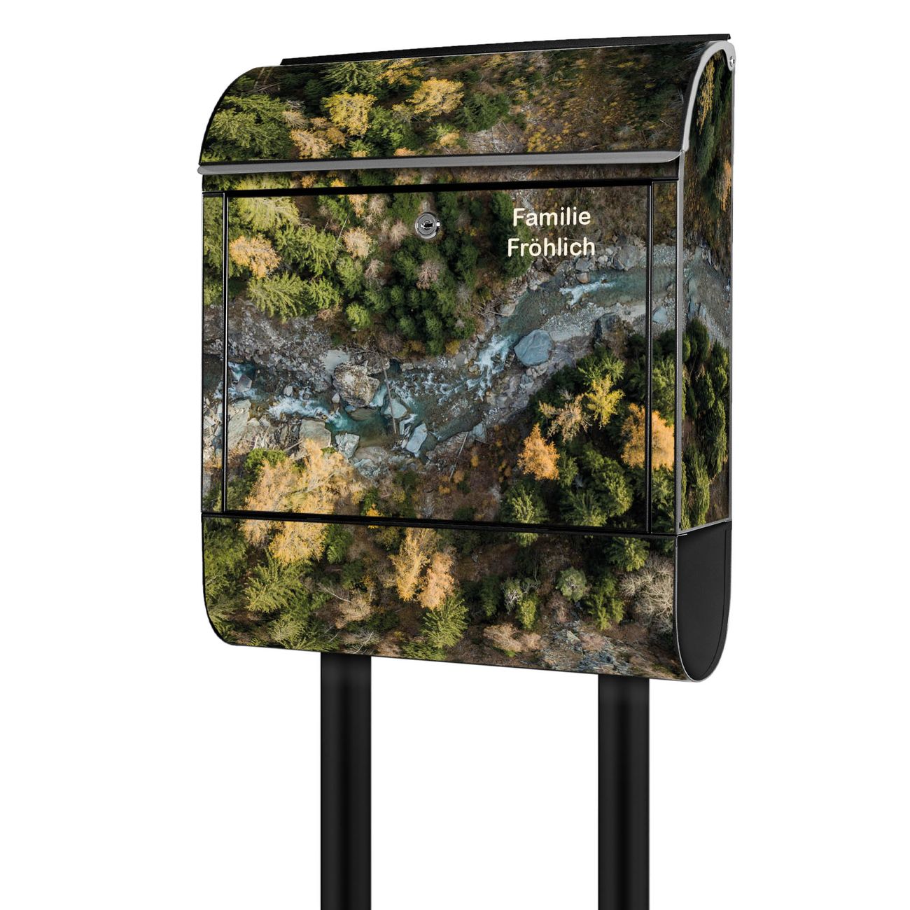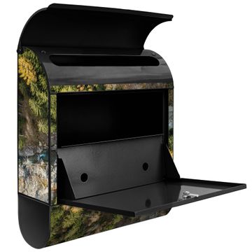 Der banjado Standbriefkasten mit Motiv Motiv Fluss im Tal 2 kombiniert großzügigen Stauraum mit modernem Design. Durch das geräumige Fach finden auch große A4-Sendungen problemlos Platz. Die integrierte Zeitungsrolle sorgt dafür, dass Tageszeitungen und Magazine separat und griffbereit untergebracht sind. Der pulverbeschichtete Standfuß ist farblich passend zum Briefkasten gestaltet und sorgt für ein stimmiges Gesamtbild. Mit dem individuellen Motiv setzen Sie einen optischen Akzent, der sowohl praktisch als auch dekorativ ist.