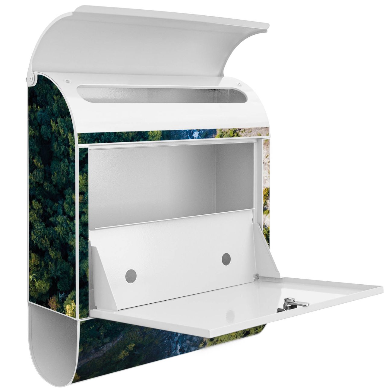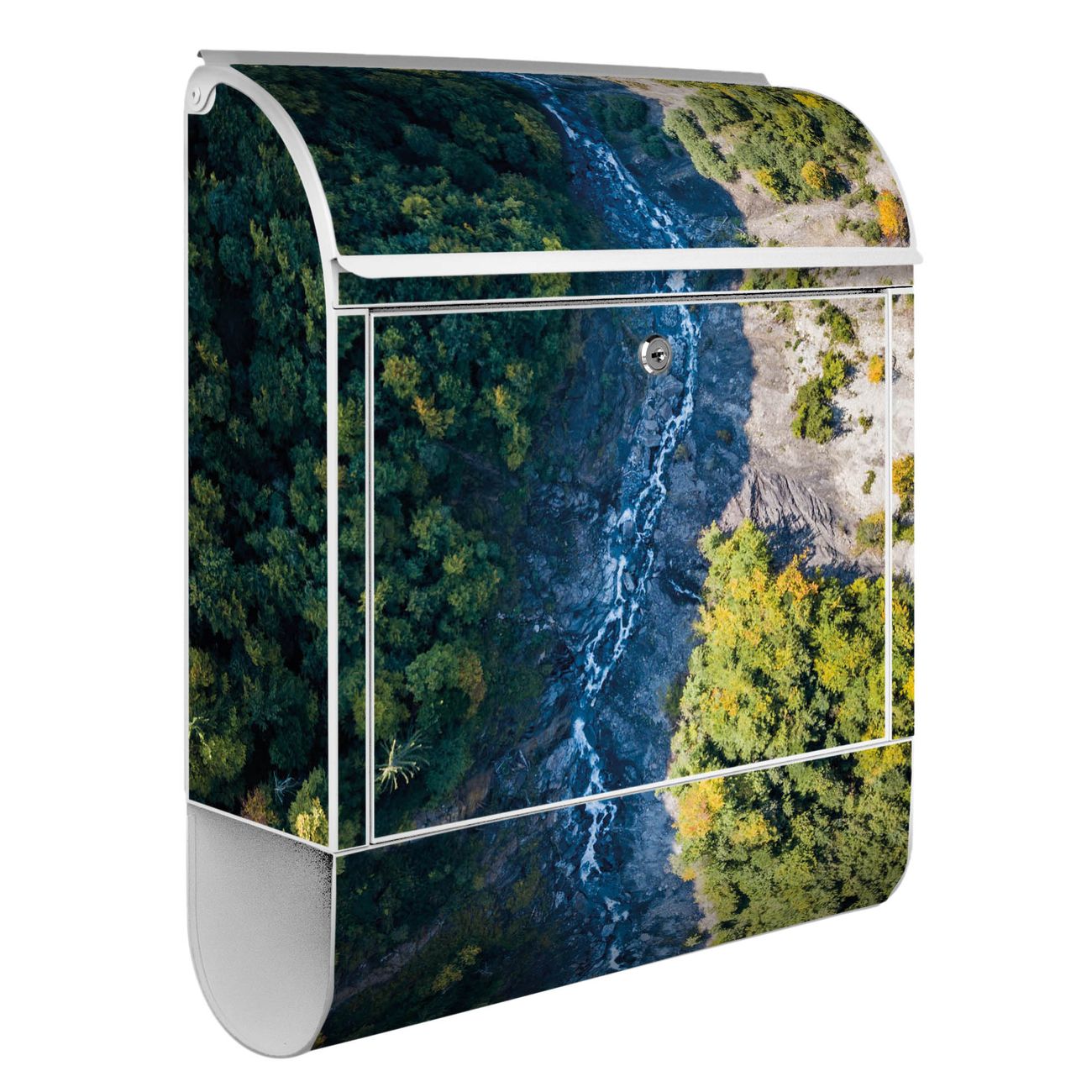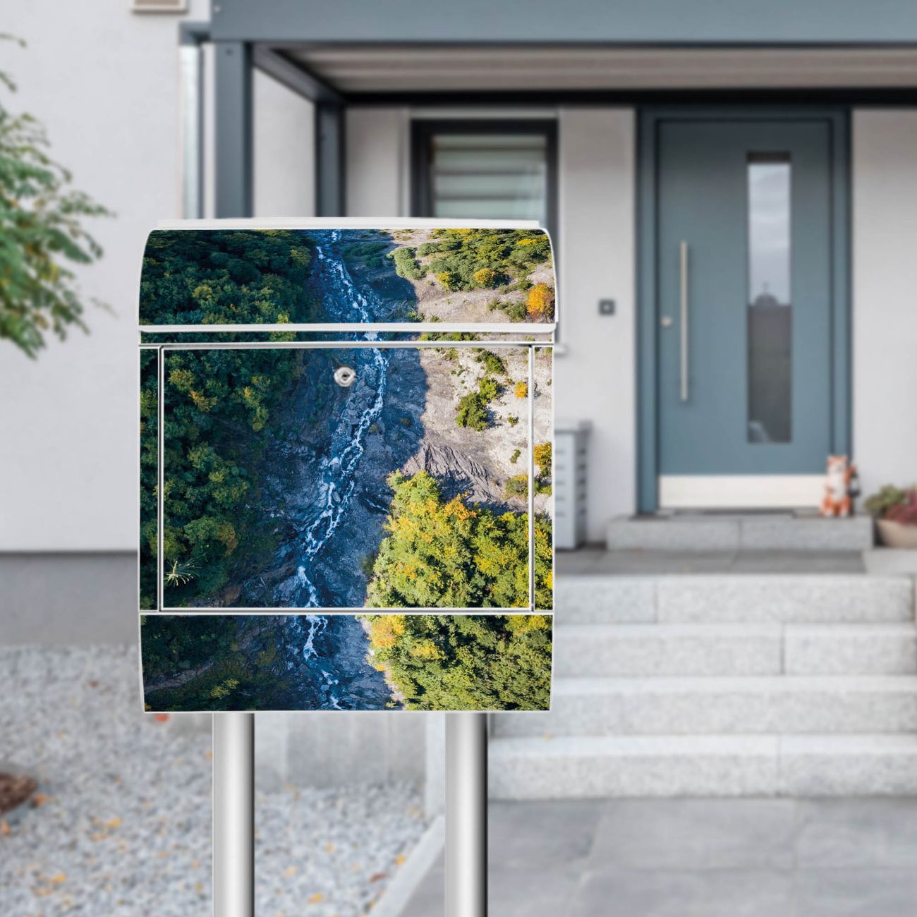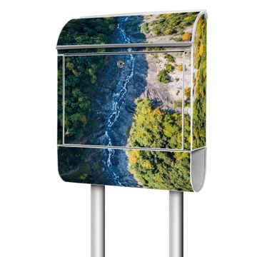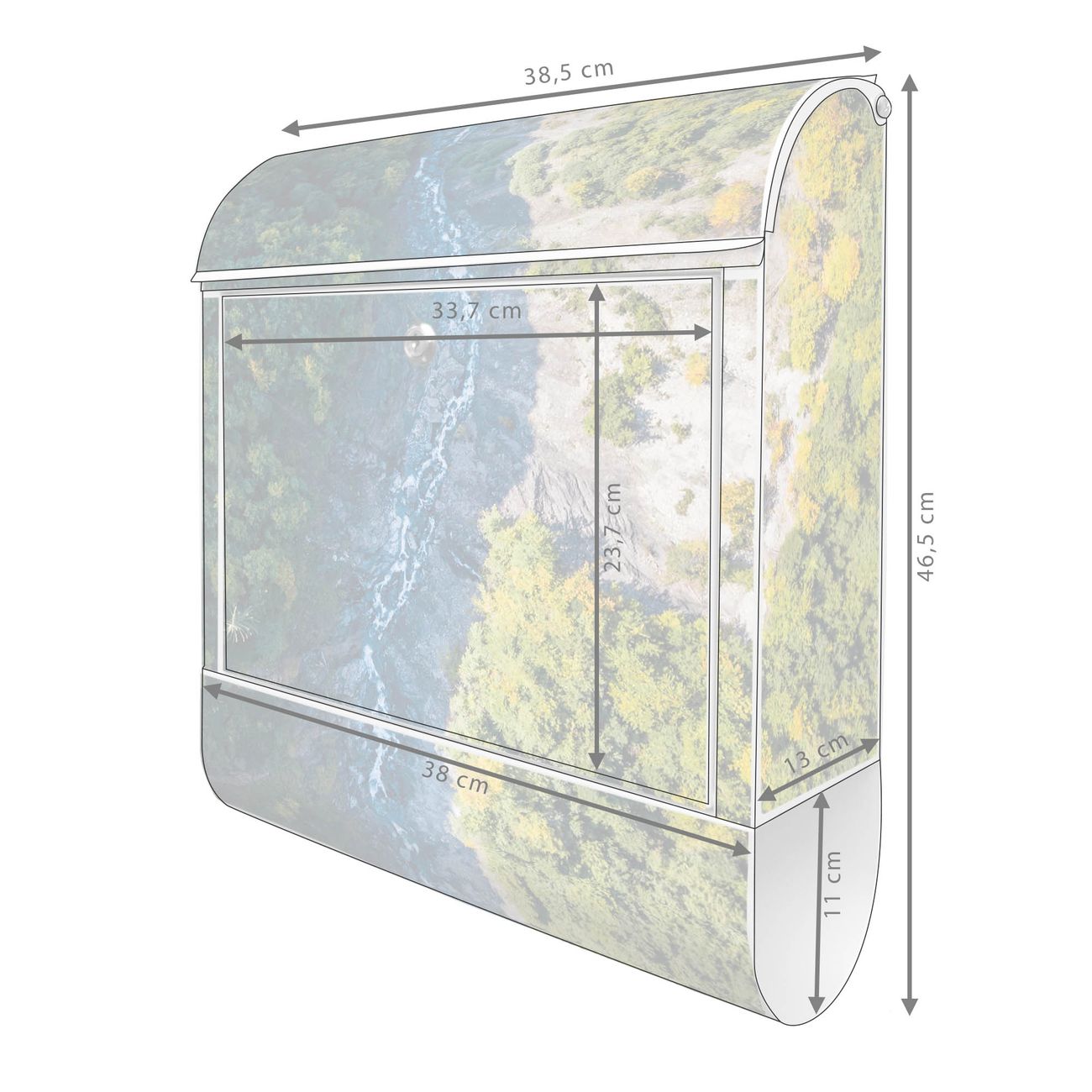 Der banjado Standbriefkasten mit Motiv Motiv Fluss im Tal kombiniert großzügigen Stauraum mit modernem Design. Durch das geräumige Fach finden auch große A4-Sendungen problemlos Platz. Die integrierte Zeitungsrolle sorgt dafür, dass Tageszeitungen und Magazine separat und griffbereit untergebracht sind. Der pulverbeschichtete Standfuß ist farblich passend zum Briefkasten gestaltet und sorgt für ein stimmiges Gesamtbild. Mit dem individuellen Motiv setzen Sie einen optischen Akzent, der sowohl praktisch als auch dekorativ ist.