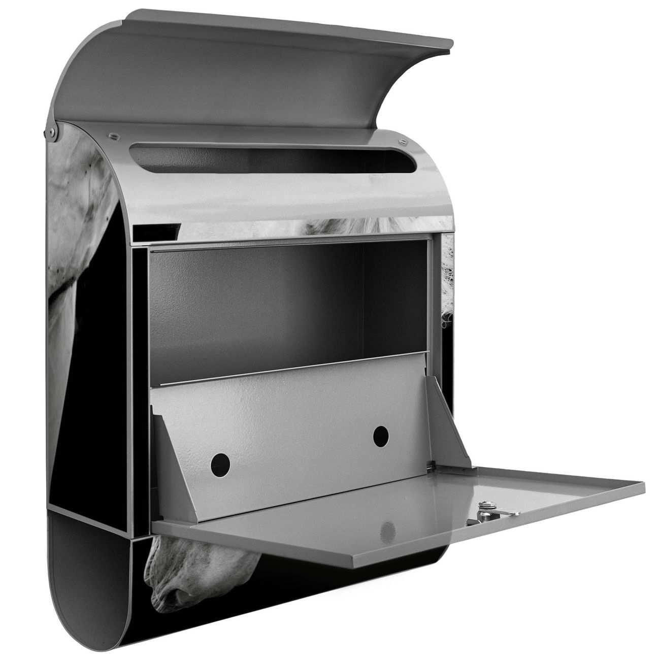 Der banjado Standbriefkasten mit Motiv Motiv Frederik kombiniert großzügigen Stauraum mit modernem Design. Durch das geräumige Fach finden auch große A4-Sendungen problemlos Platz. Die integrierte Zeitungsrolle sorgt dafür, dass Tageszeitungen und Magazine separat und griffbereit untergebracht sind. Der pulverbeschichtete Standfuß ist farblich passend zum Briefkasten gestaltet und sorgt für ein stimmiges Gesamtbild. Mit dem individuellen Motiv setzen Sie einen optischen Akzent, der sowohl praktisch als auch dekorativ ist.