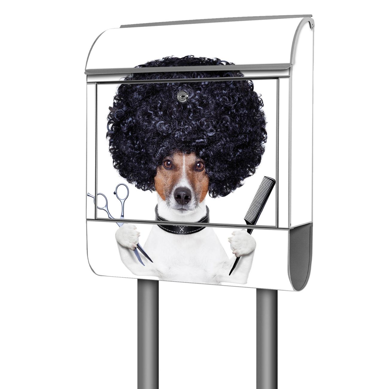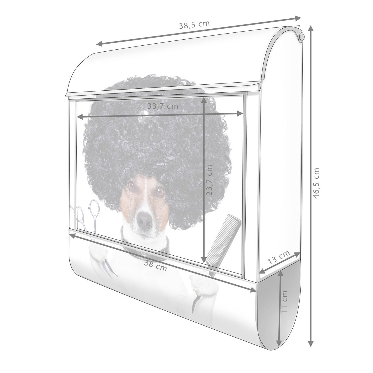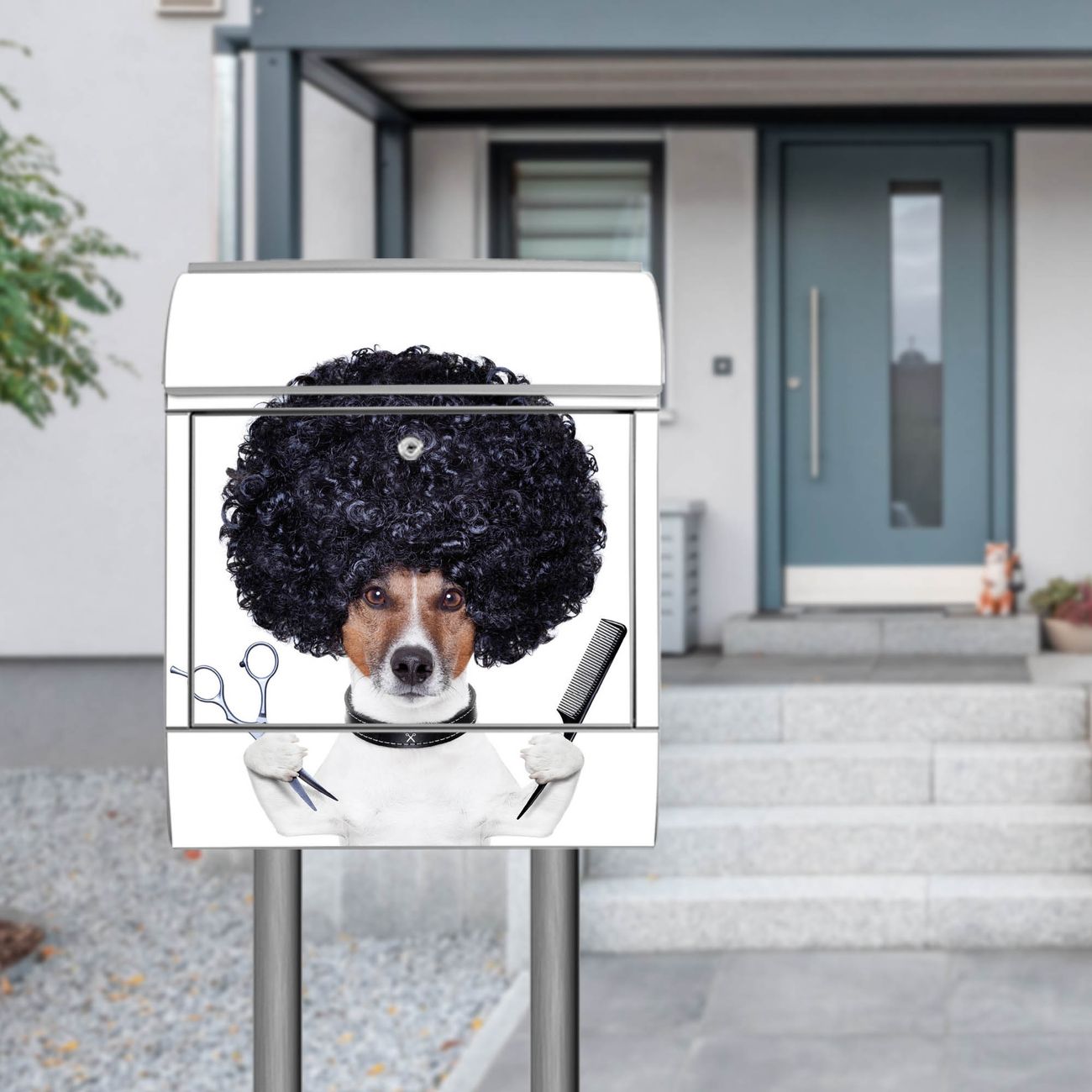 Der banjado Standbriefkasten mit Motiv Motiv Friseur Jack Russel kombiniert großzügigen Stauraum mit modernem Design. Durch das geräumige Fach finden auch große A4-Sendungen problemlos Platz. Die integrierte Zeitungsrolle sorgt dafür, dass Tageszeitungen und Magazine separat und griffbereit untergebracht sind. Der pulverbeschichtete Standfuß ist farblich passend zum Briefkasten gestaltet und sorgt für ein stimmiges Gesamtbild. Mit dem individuellen Motiv setzen Sie einen optischen Akzent, der sowohl praktisch als auch dekorativ ist.
