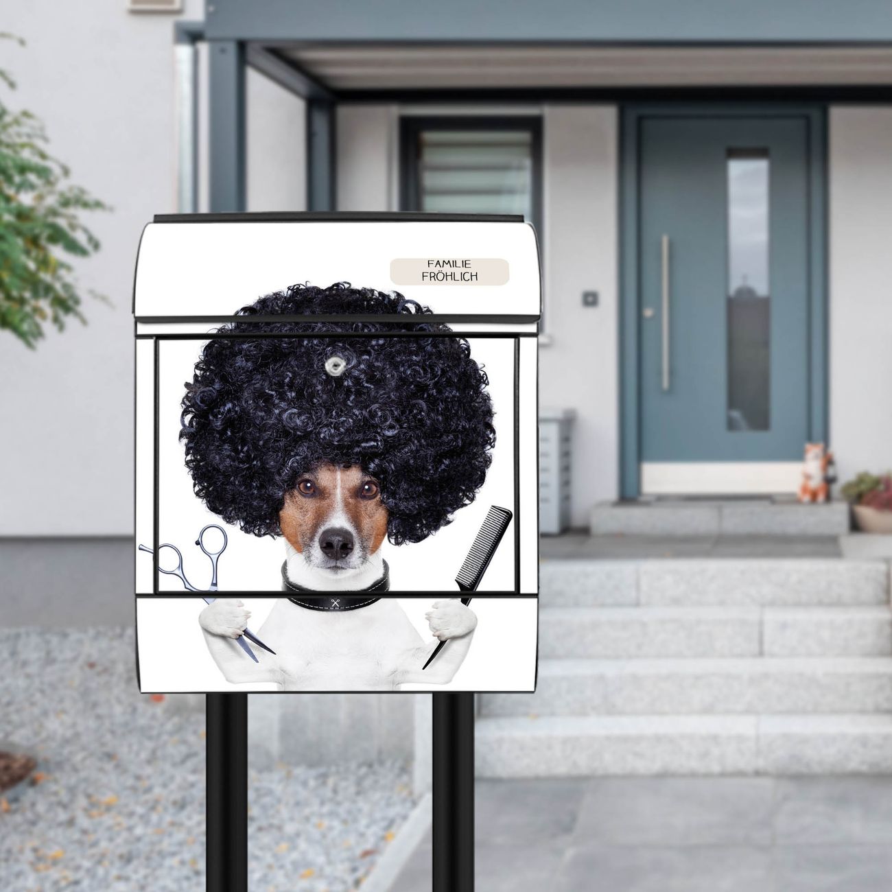 Standbriefkasten Stahl Friseur Jack Russel