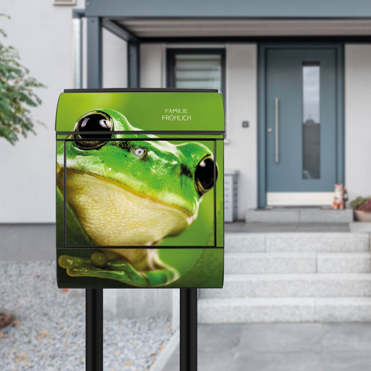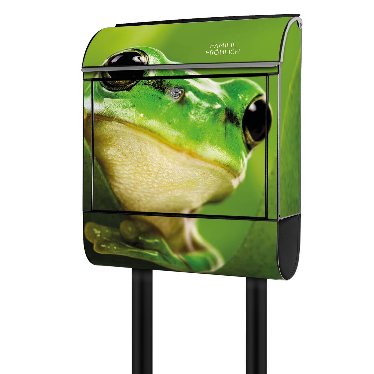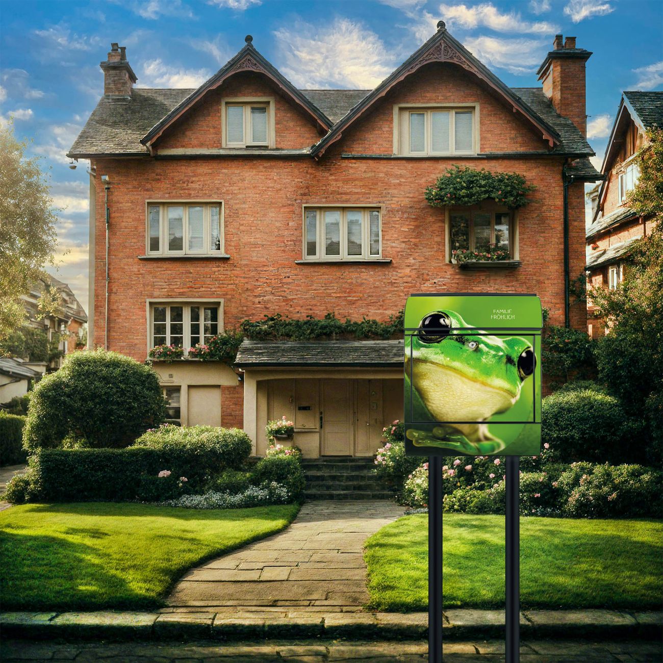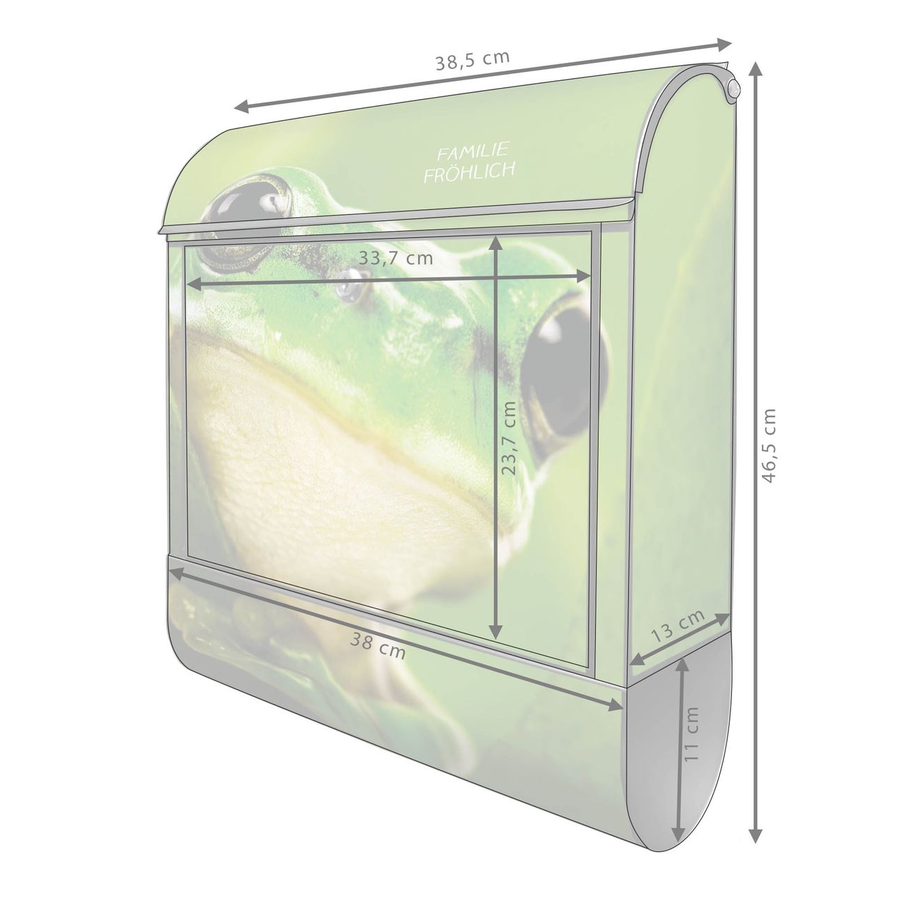 Der banjado Standbriefkasten mit Motiv Motiv Frosch kombiniert großzügigen Stauraum mit modernem Design. Durch das geräumige Fach finden auch große A4-Sendungen problemlos Platz. Die integrierte Zeitungsrolle sorgt dafür, dass Tageszeitungen und Magazine separat und griffbereit untergebracht sind. Der pulverbeschichtete Standfuß ist farblich passend zum Briefkasten gestaltet und sorgt für ein stimmiges Gesamtbild. Mit dem individuellen Motiv setzen Sie einen optischen Akzent, der sowohl praktisch als auch dekorativ ist.