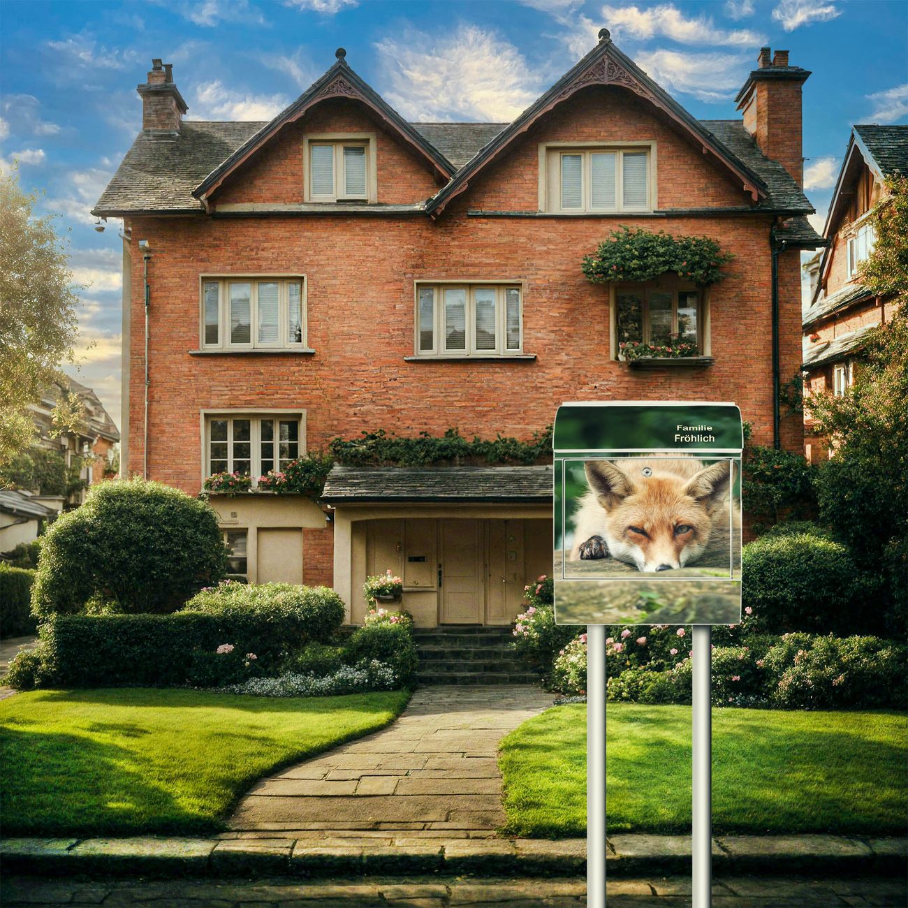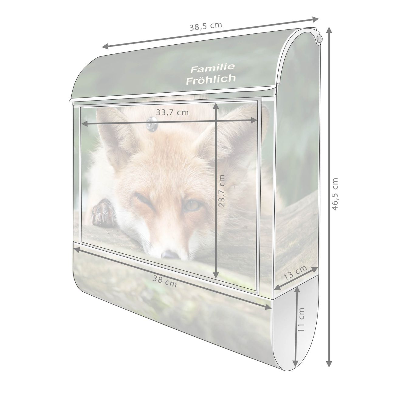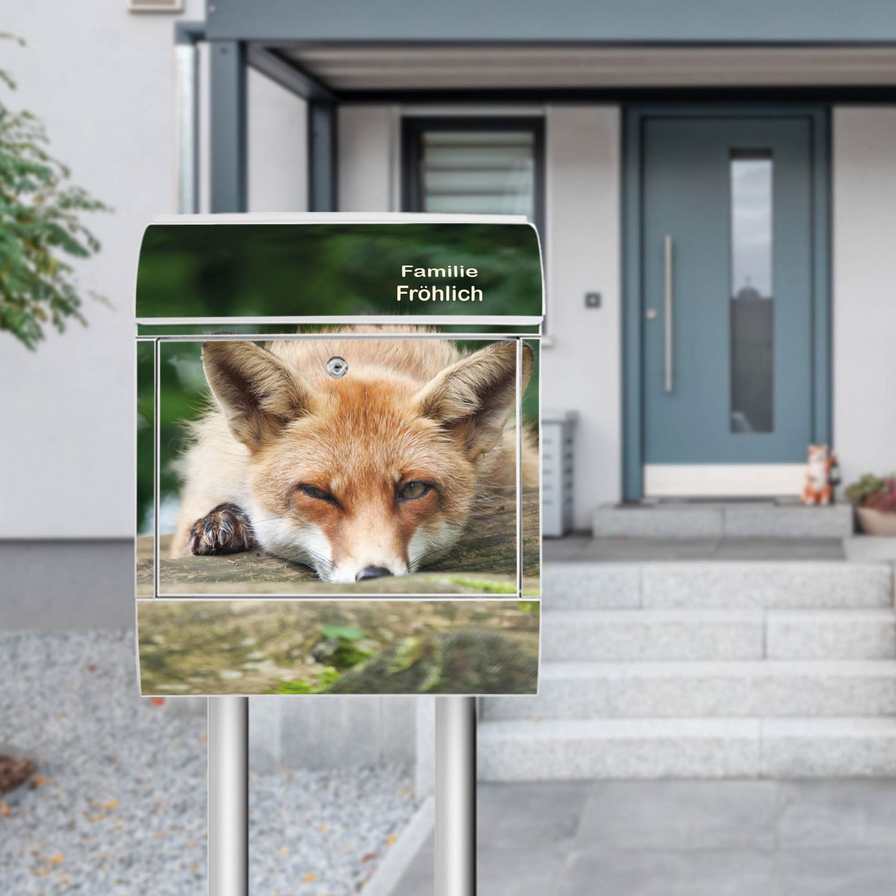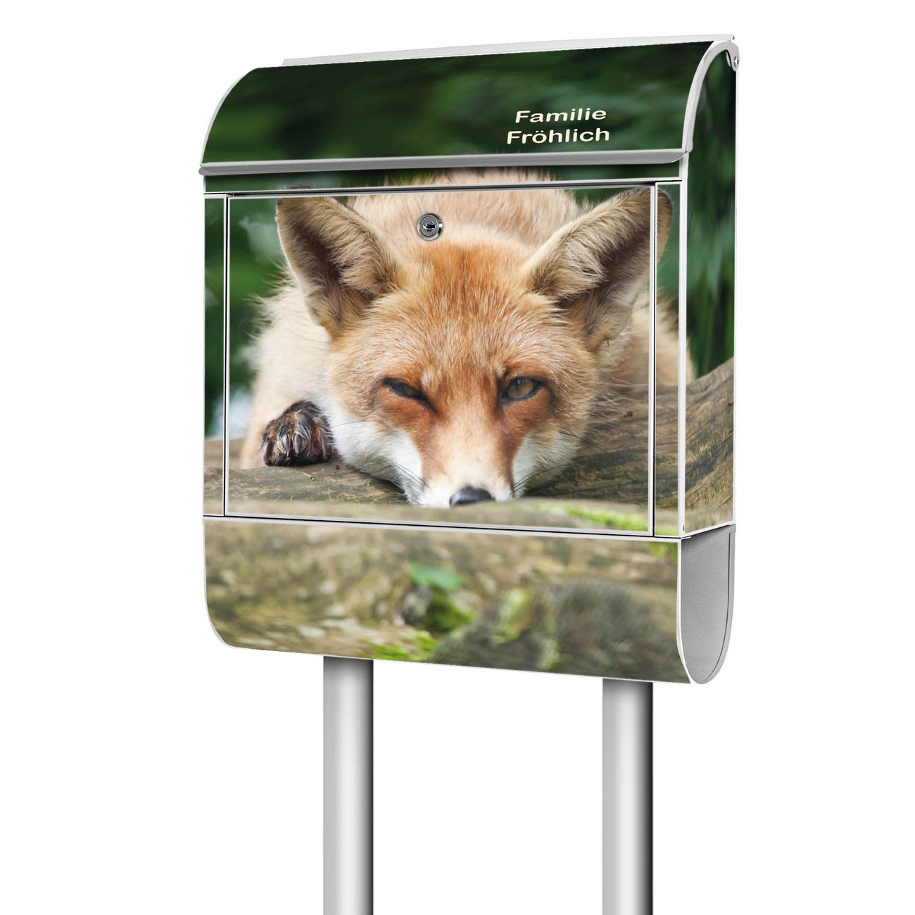 Der banjado Standbriefkasten mit Motiv Motiv Fuchs Relax kombiniert großzügigen Stauraum mit modernem Design. Durch das geräumige Fach finden auch große A4-Sendungen problemlos Platz. Die integrierte Zeitungsrolle sorgt dafür, dass Tageszeitungen und Magazine separat und griffbereit untergebracht sind. Der pulverbeschichtete Standfuß ist farblich passend zum Briefkasten gestaltet und sorgt für ein stimmiges Gesamtbild. Mit dem individuellen Motiv setzen Sie einen optischen Akzent, der sowohl praktisch als auch dekorativ ist.