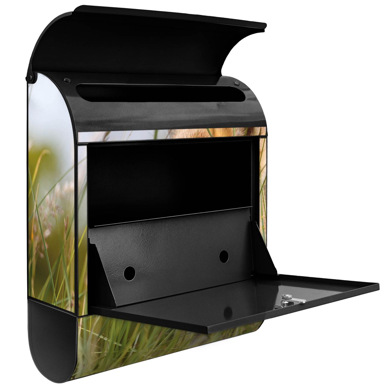 Der banjado Standbriefkasten mit Motiv Motiv Fuchs kombiniert großzügigen Stauraum mit modernem Design. Durch das geräumige Fach finden auch große A4-Sendungen problemlos Platz. Die integrierte Zeitungsrolle sorgt dafür, dass Tageszeitungen und Magazine separat und griffbereit untergebracht sind. Der pulverbeschichtete Standfuß ist farblich passend zum Briefkasten gestaltet und sorgt für ein stimmiges Gesamtbild. Mit dem individuellen Motiv setzen Sie einen optischen Akzent, der sowohl praktisch als auch dekorativ ist.