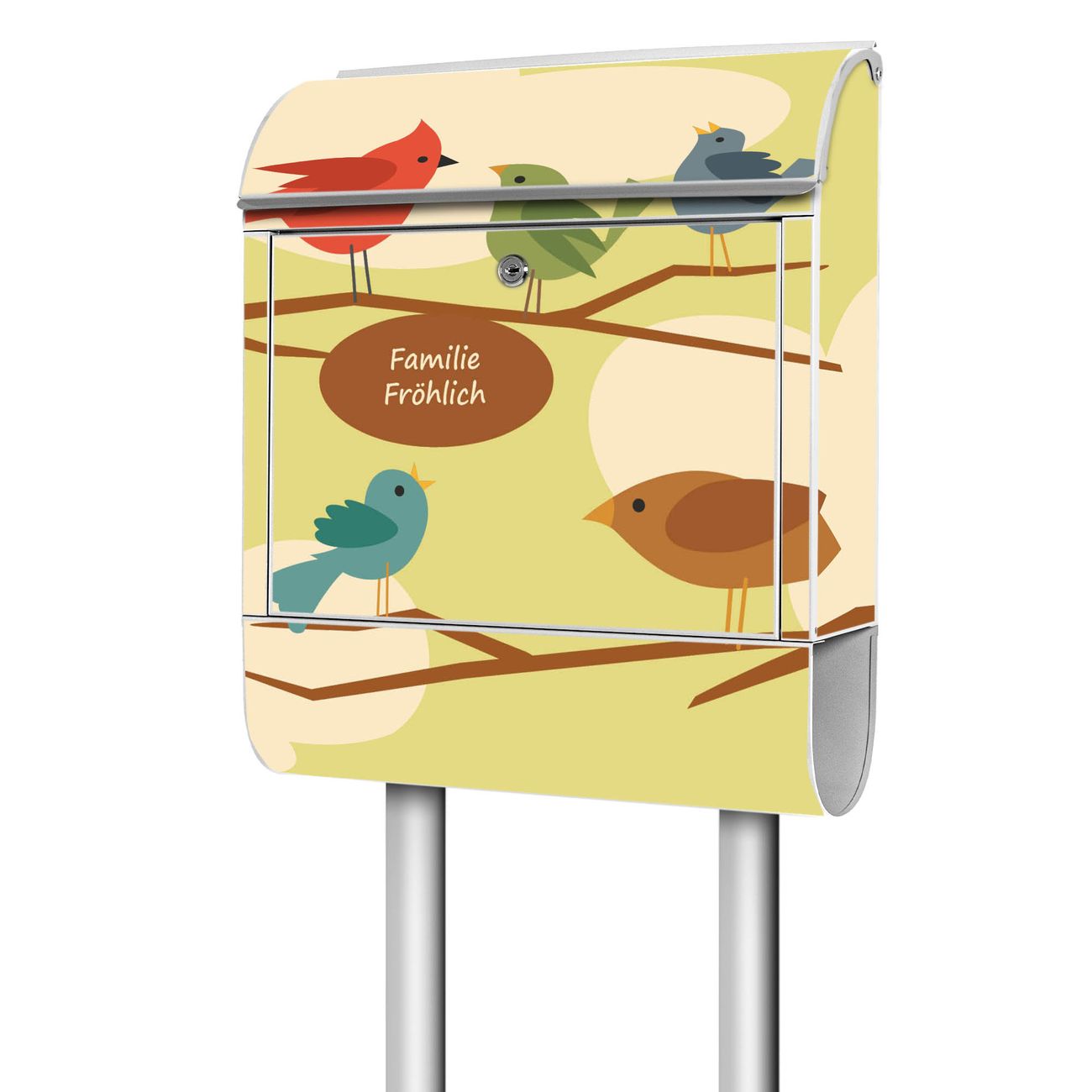 Standbriefkasten Stahl Fünf Vögel