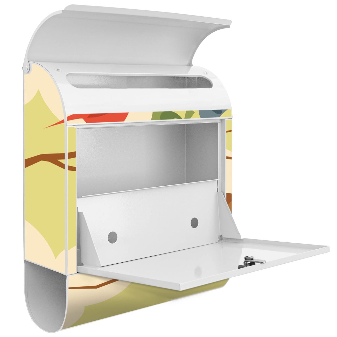 Der banjado Standbriefkasten mit Motiv Motiv Fünf Vögel kombiniert großzügigen Stauraum mit modernem Design. Durch das geräumige Fach finden auch große A4-Sendungen problemlos Platz. Die integrierte Zeitungsrolle sorgt dafür, dass Tageszeitungen und Magazine separat und griffbereit untergebracht sind. Der pulverbeschichtete Standfuß ist farblich passend zum Briefkasten gestaltet und sorgt für ein stimmiges Gesamtbild. Mit dem individuellen Motiv setzen Sie einen optischen Akzent, der sowohl praktisch als auch dekorativ ist.