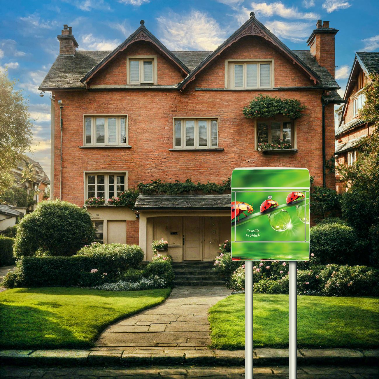 Der Vorschau-Text Familie Fröhlich wird durch Ihren persönlichen Wunschtext ersetzt. Die Schriftart und Farbe bleiben gleich wie in der Vorschau.
