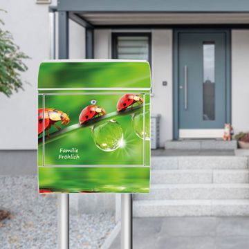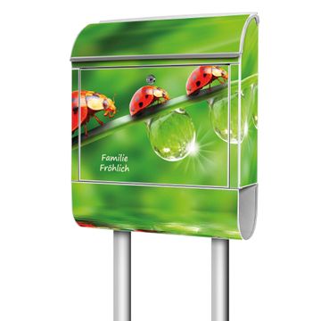 Der Standbriefkasten besteht aus pulverbeschichtetem Stahl und ist insgesamt ca. 161,5 x 47 x 16 cm groß. Das Motiv wird auf eine wetter- und UV-beständige Folie aufgebracht und mit einem robusten Schutzlaminat versiegelt. Damit bleibt die Farbbrillanz auch bei Sonne und Regen lange erhalten. Für einen sicheren Halt empfehlen wir, den Standbriefkasten mindestens 15 cm einzubetonieren. Jeder Briefkasten wird in Sachsen in einer kleinen Manufaktur von Hand veredelt - Sie erhalten ein Stück langlebige Handarbeit, das Funktionalität und Design vereint.