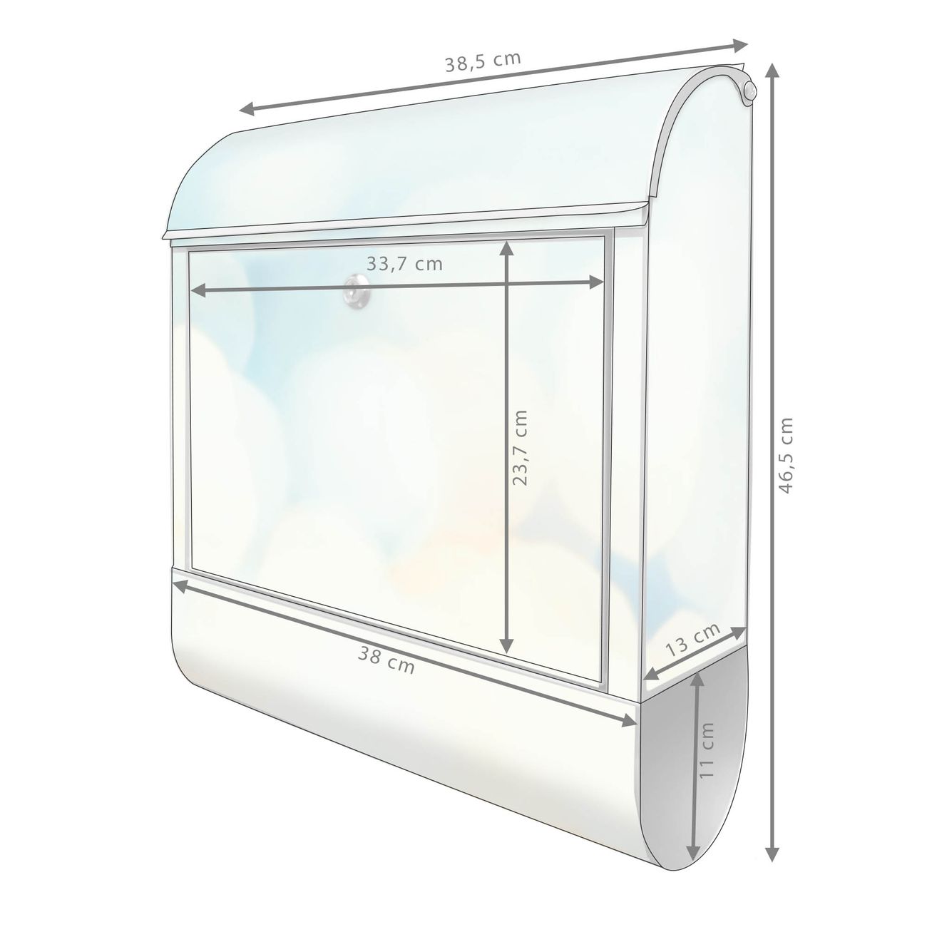 Der banjado Standbriefkasten mit Motiv Motiv Funkelnde Lichter kombiniert großzügigen Stauraum mit modernem Design. Durch das geräumige Fach finden auch große A4-Sendungen problemlos Platz. Die integrierte Zeitungsrolle sorgt dafür, dass Tageszeitungen und Magazine separat und griffbereit untergebracht sind. Der pulverbeschichtete Standfuß ist farblich passend zum Briefkasten gestaltet und sorgt für ein stimmiges Gesamtbild. Mit dem individuellen Motiv setzen Sie einen optischen Akzent, der sowohl praktisch als auch dekorativ ist.