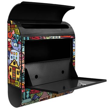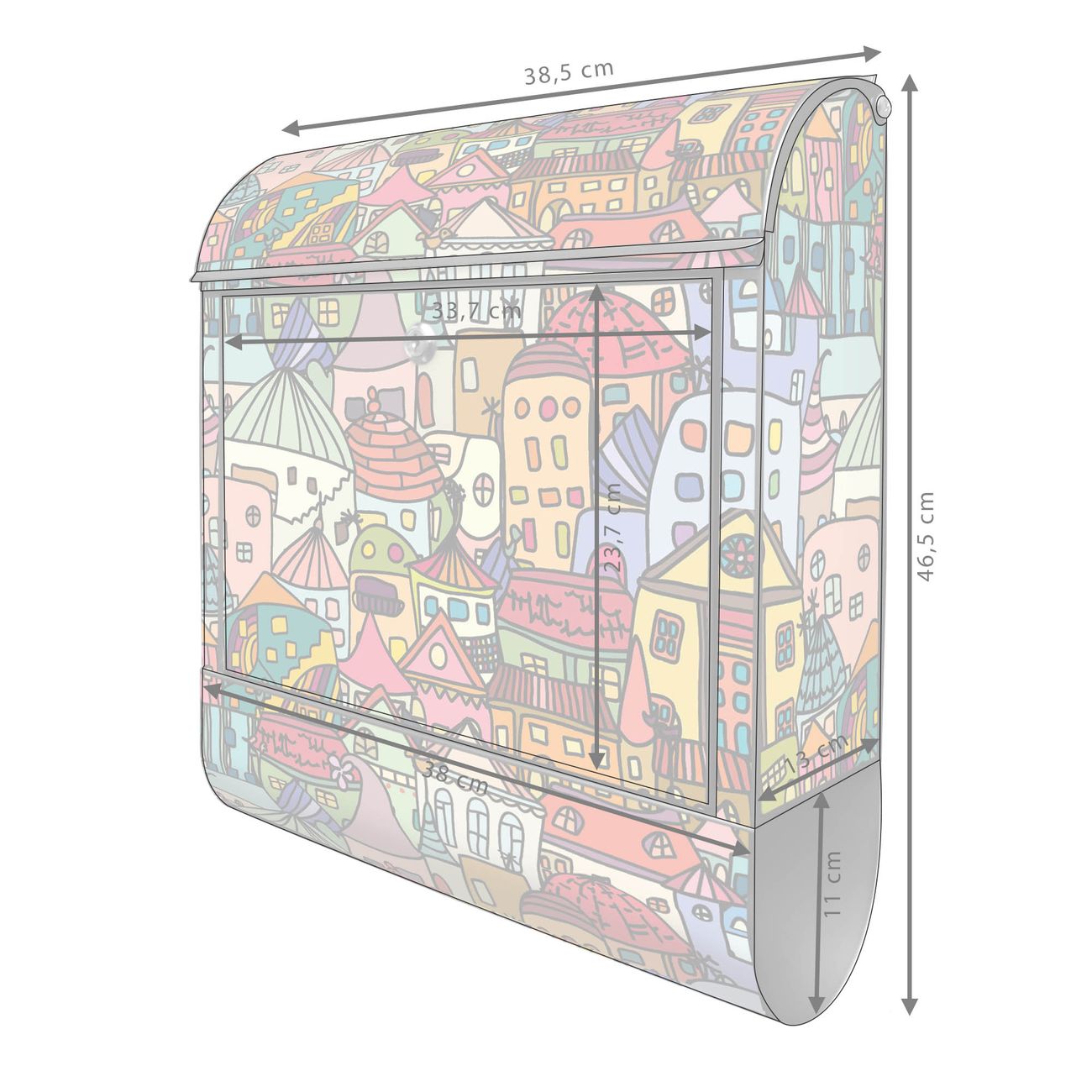 Der banjado Standbriefkasten mit Motiv Motiv Funky Town kombiniert großzügigen Stauraum mit modernem Design. Durch das geräumige Fach finden auch große A4-Sendungen problemlos Platz. Die integrierte Zeitungsrolle sorgt dafür, dass Tageszeitungen und Magazine separat und griffbereit untergebracht sind. Der pulverbeschichtete Standfuß ist farblich passend zum Briefkasten gestaltet und sorgt für ein stimmiges Gesamtbild. Mit dem individuellen Motiv setzen Sie einen optischen Akzent, der sowohl praktisch als auch dekorativ ist.