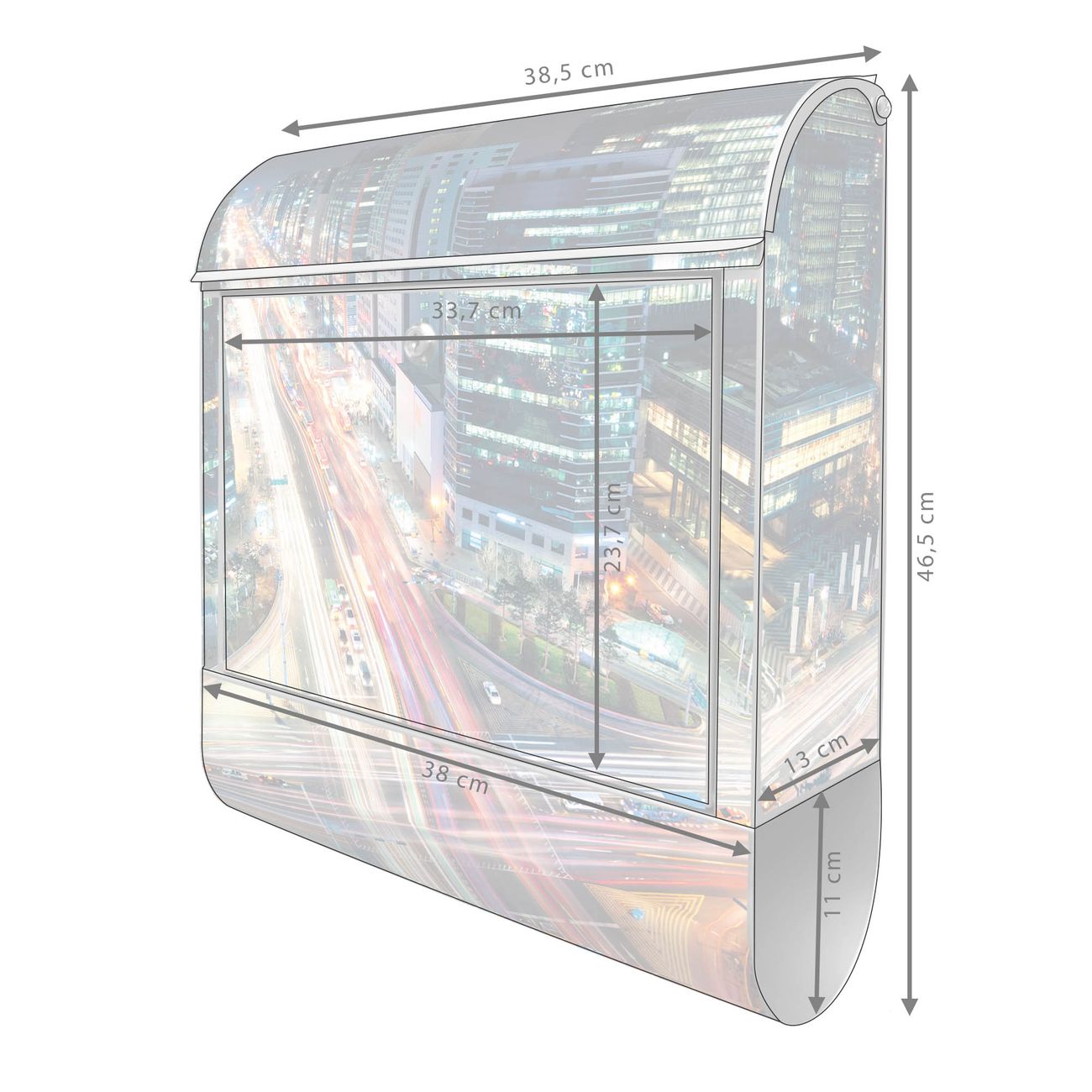 Der banjado Standbriefkasten mit Motiv Motiv Gangnam Bei Nacht kombiniert großzügigen Stauraum mit modernem Design. Durch das geräumige Fach finden auch große A4-Sendungen problemlos Platz. Die integrierte Zeitungsrolle sorgt dafür, dass Tageszeitungen und Magazine separat und griffbereit untergebracht sind. Der pulverbeschichtete Standfuß ist farblich passend zum Briefkasten gestaltet und sorgt für ein stimmiges Gesamtbild. Mit dem individuellen Motiv setzen Sie einen optischen Akzent, der sowohl praktisch als auch dekorativ ist.