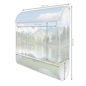 Der banjado Standbriefkasten mit Motiv Motiv Gebirgssee kombiniert großzügigen Stauraum mit modernem Design. Durch das geräumige Fach finden auch große A4-Sendungen problemlos Platz. Die integrierte Zeitungsrolle sorgt dafür, dass Tageszeitungen und Magazine separat und griffbereit untergebracht sind. Der pulverbeschichtete Standfuß ist farblich passend zum Briefkasten gestaltet und sorgt für ein stimmiges Gesamtbild. Mit dem individuellen Motiv setzen Sie einen optischen Akzent, der sowohl praktisch als auch dekorativ ist.
