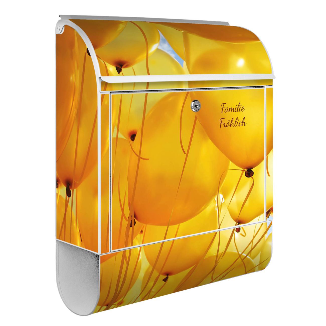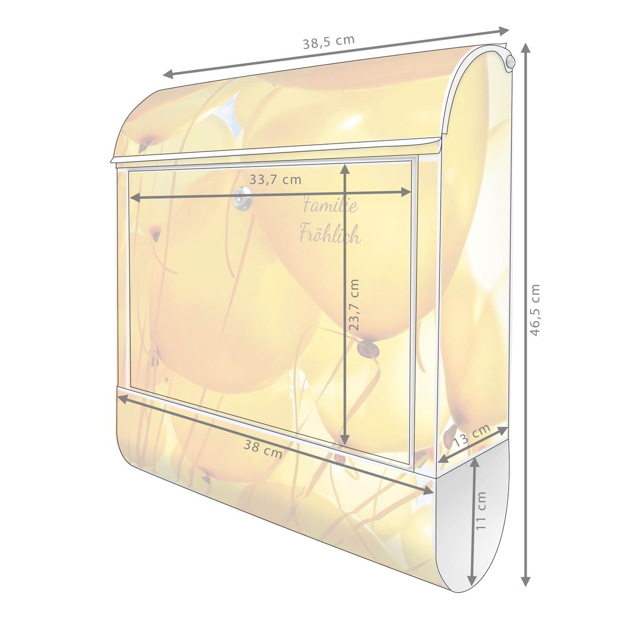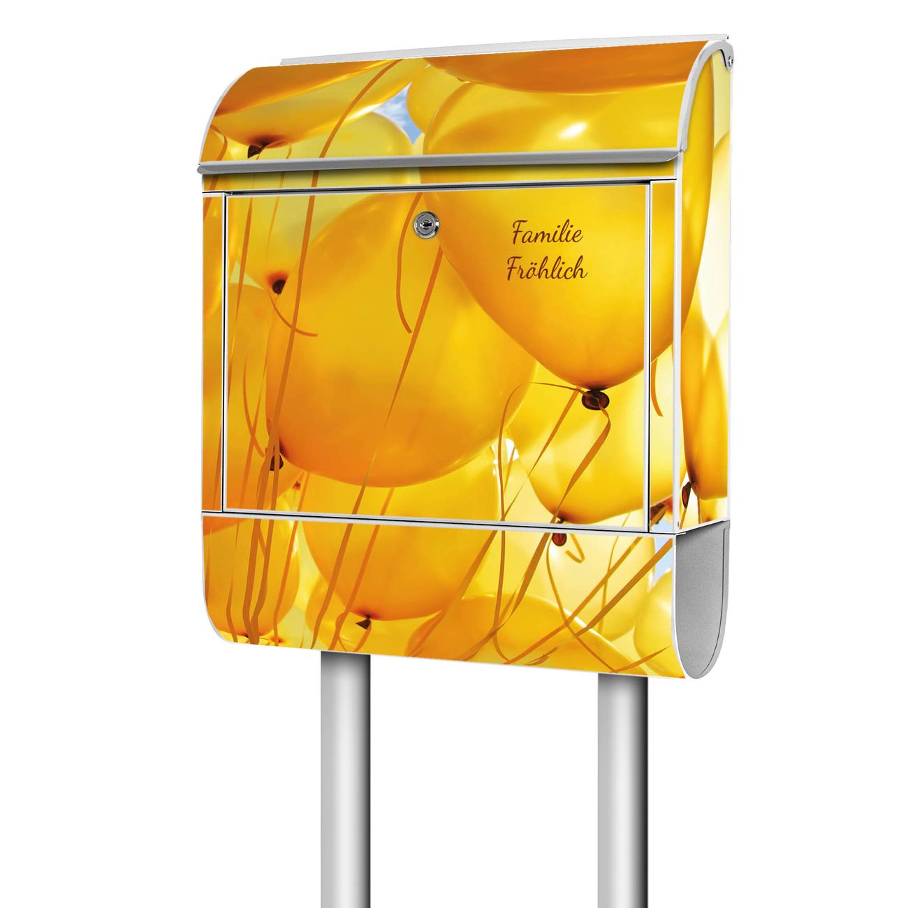 Der banjado Standbriefkasten mit Motiv Motiv Gelbe Luftballons kombiniert großzügigen Stauraum mit modernem Design. Durch das geräumige Fach finden auch große A4-Sendungen problemlos Platz. Die integrierte Zeitungsrolle sorgt dafür, dass Tageszeitungen und Magazine separat und griffbereit untergebracht sind. Der pulverbeschichtete Standfuß ist farblich passend zum Briefkasten gestaltet und sorgt für ein stimmiges Gesamtbild. Mit dem individuellen Motiv setzen Sie einen optischen Akzent, der sowohl praktisch als auch dekorativ ist.