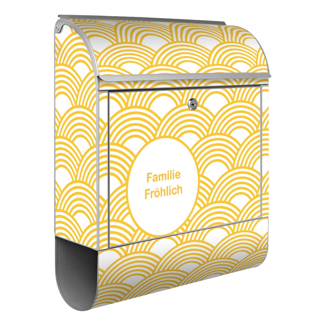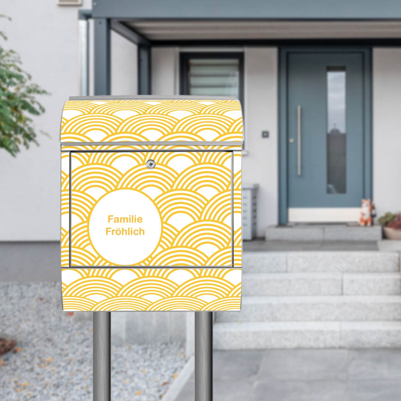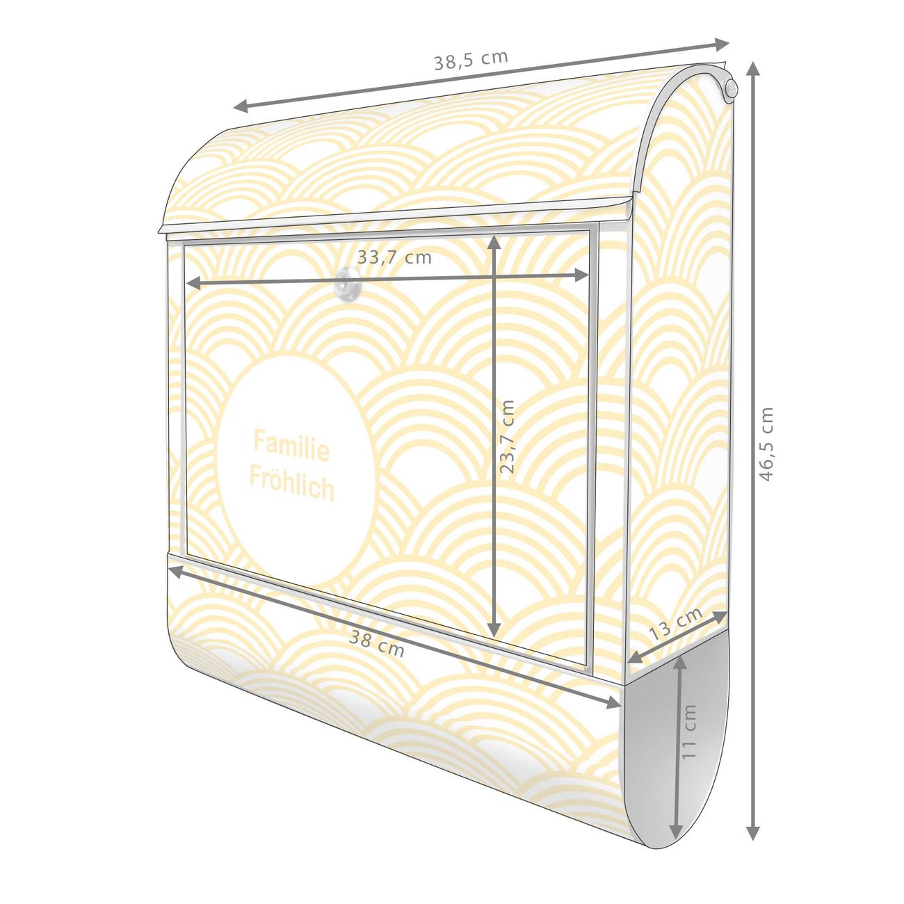 Der banjado Standbriefkasten mit Motiv Motiv Gelbe Wellen kombiniert großzügigen Stauraum mit modernem Design. Durch das geräumige Fach finden auch große A4-Sendungen problemlos Platz. Die integrierte Zeitungsrolle sorgt dafür, dass Tageszeitungen und Magazine separat und griffbereit untergebracht sind. Der pulverbeschichtete Standfuß ist farblich passend zum Briefkasten gestaltet und sorgt für ein stimmiges Gesamtbild. Mit dem individuellen Motiv setzen Sie einen optischen Akzent, der sowohl praktisch als auch dekorativ ist.