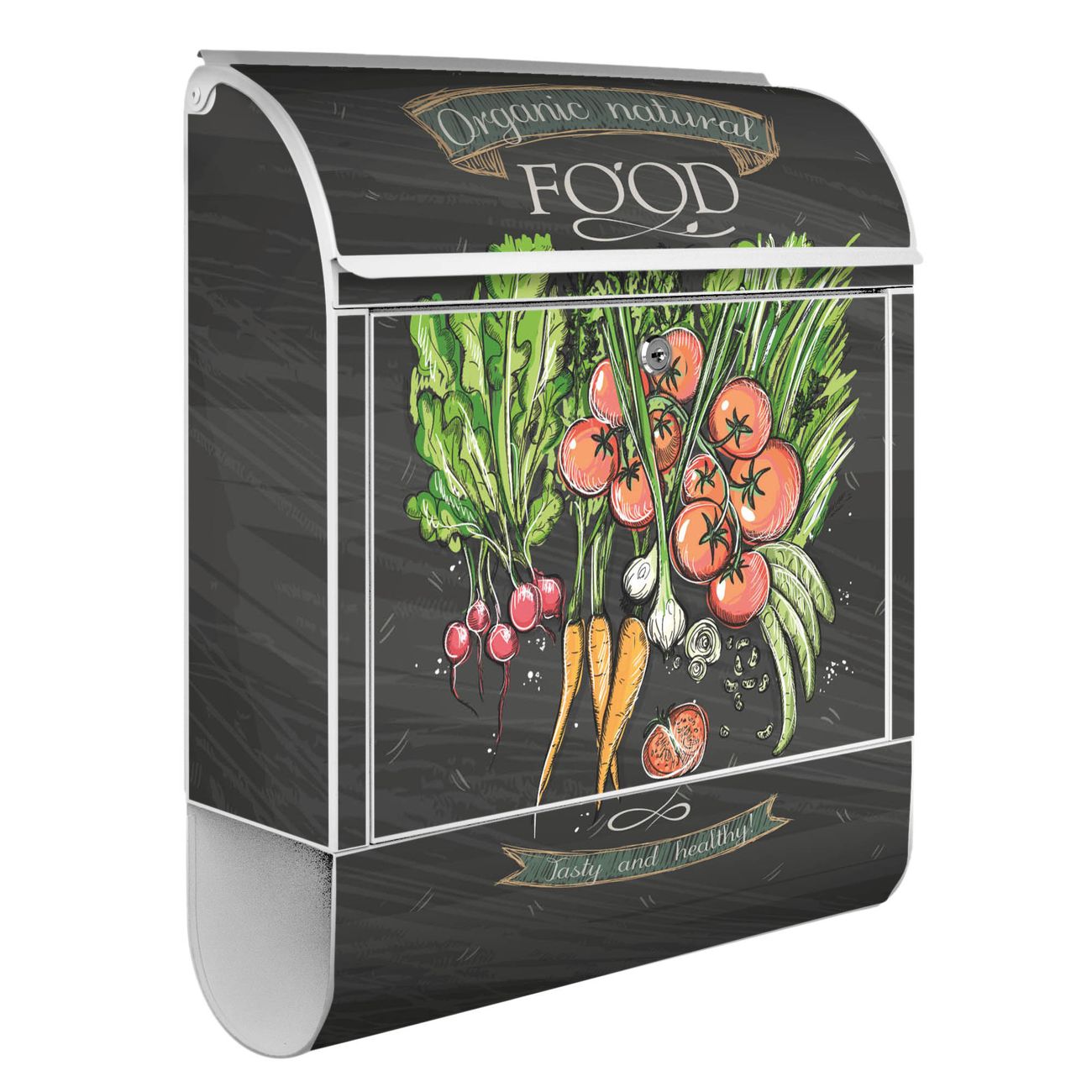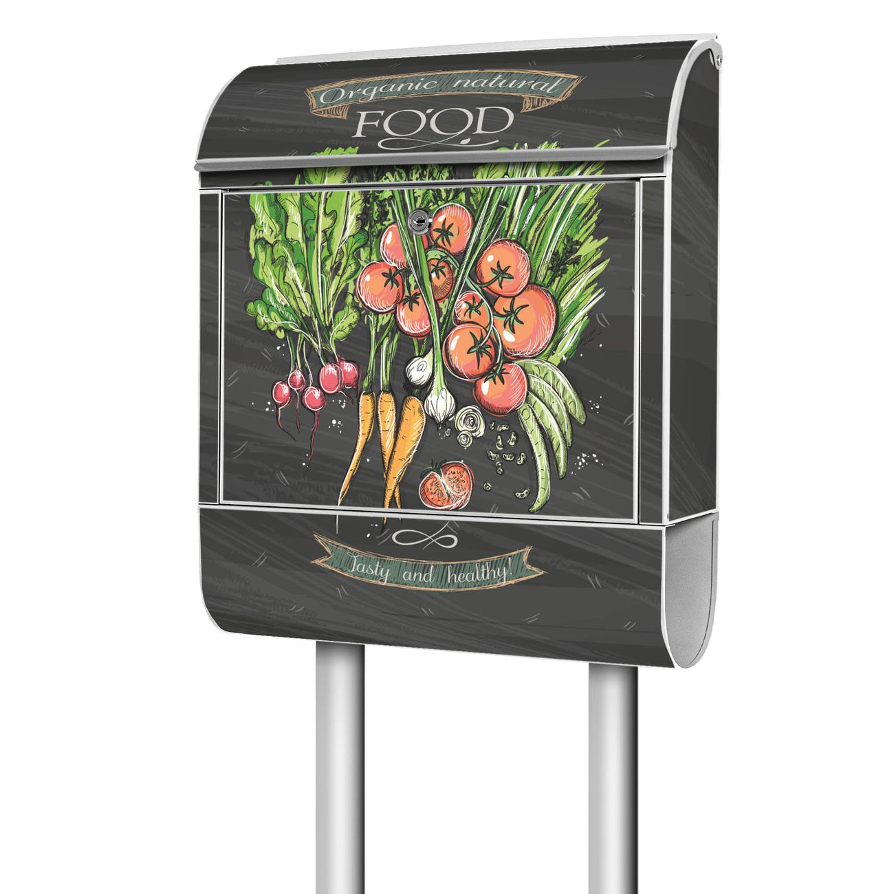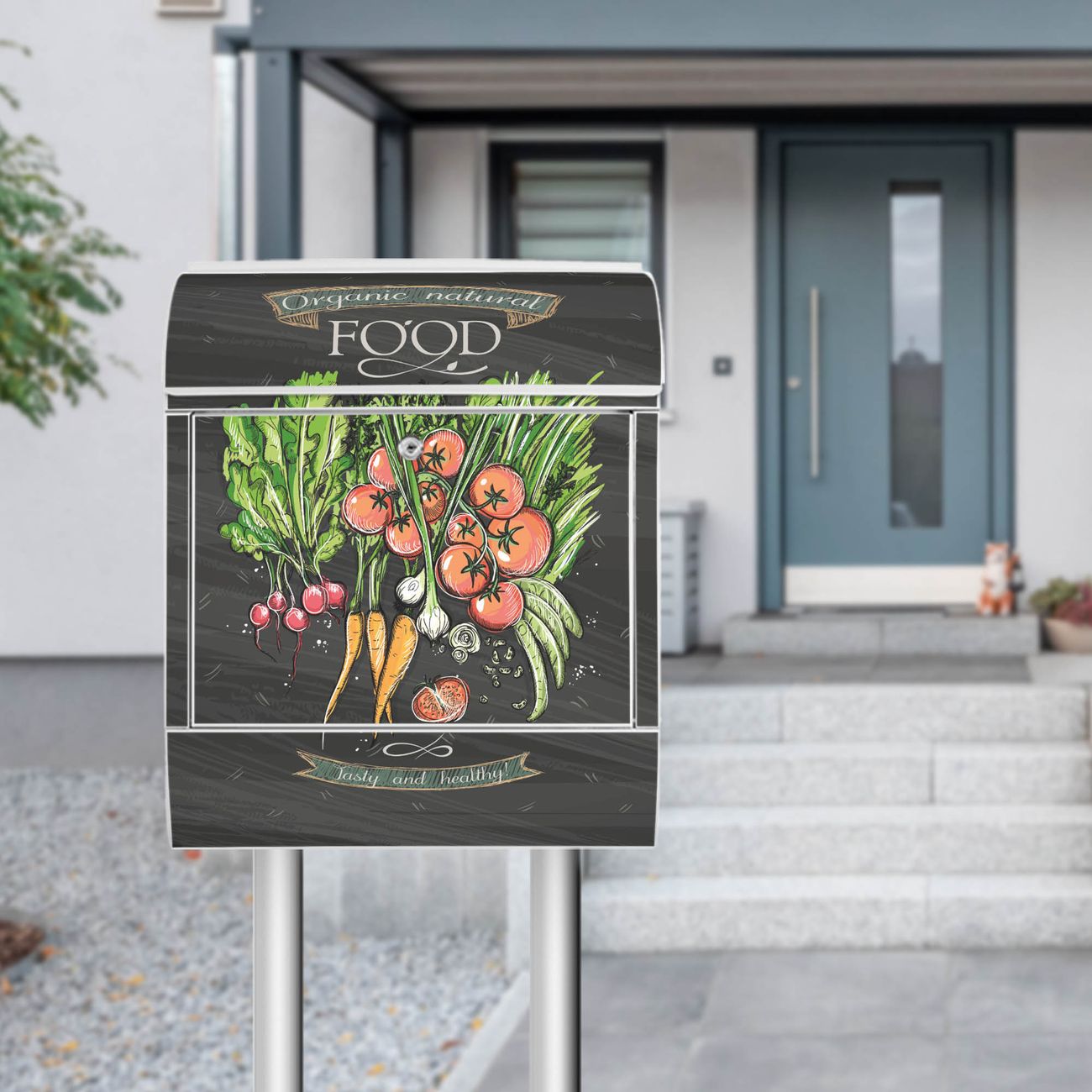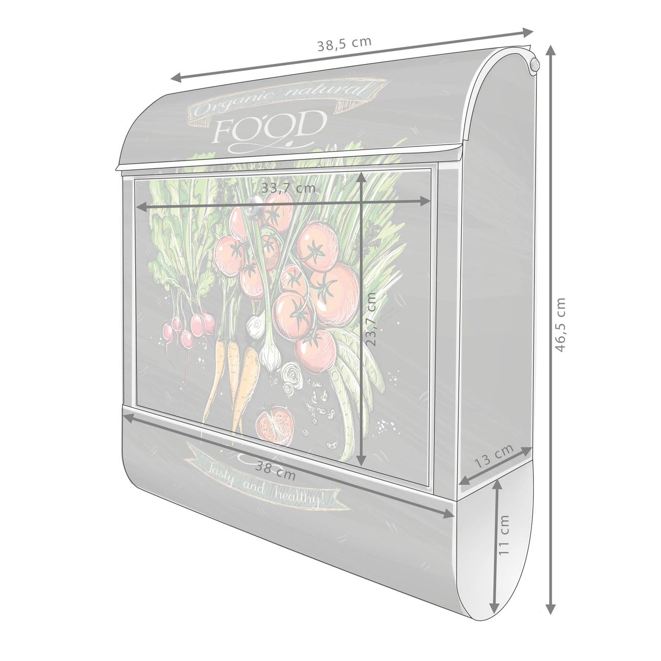 Der banjado Standbriefkasten mit Motiv Motiv Gesund Und Lecker kombiniert großzügigen Stauraum mit modernem Design. Durch das geräumige Fach finden auch große A4-Sendungen problemlos Platz. Die integrierte Zeitungsrolle sorgt dafür, dass Tageszeitungen und Magazine separat und griffbereit untergebracht sind. Der pulverbeschichtete Standfuß ist farblich passend zum Briefkasten gestaltet und sorgt für ein stimmiges Gesamtbild. Mit dem individuellen Motiv setzen Sie einen optischen Akzent, der sowohl praktisch als auch dekorativ ist.