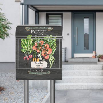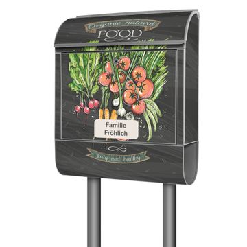 Der banjado Standbriefkasten mit Motiv Motiv Gesund Und Lecker kombiniert großzügigen Stauraum mit modernem Design. Durch das geräumige Fach finden auch große A4-Sendungen problemlos Platz. Die integrierte Zeitungsrolle sorgt dafür, dass Tageszeitungen und Magazine separat und griffbereit untergebracht sind. Der pulverbeschichtete Standfuß ist farblich passend zum Briefkasten gestaltet und sorgt für ein stimmiges Gesamtbild. Mit dem individuellen Motiv setzen Sie einen optischen Akzent, der sowohl praktisch als auch dekorativ ist.
