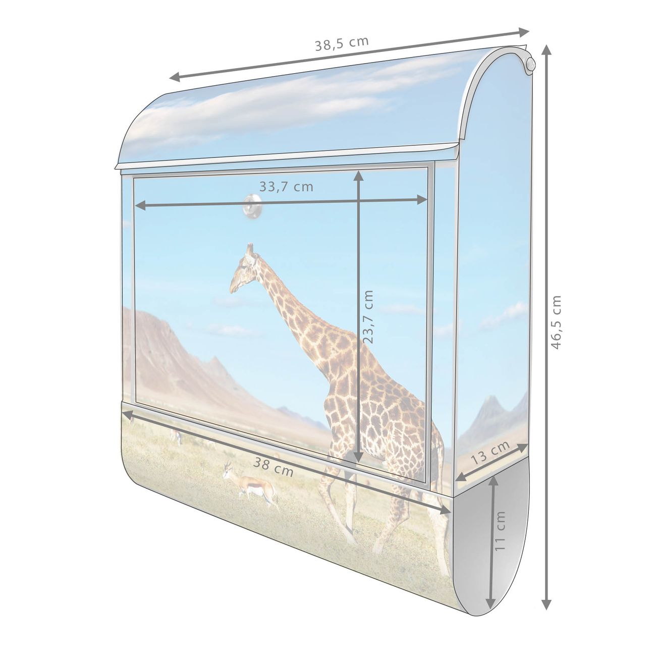 Der banjado Standbriefkasten mit Motiv Motiv Giraffe kombiniert großzügigen Stauraum mit modernem Design. Durch das geräumige Fach finden auch große A4-Sendungen problemlos Platz. Die integrierte Zeitungsrolle sorgt dafür, dass Tageszeitungen und Magazine separat und griffbereit untergebracht sind. Der pulverbeschichtete Standfuß ist farblich passend zum Briefkasten gestaltet und sorgt für ein stimmiges Gesamtbild. Mit dem individuellen Motiv setzen Sie einen optischen Akzent, der sowohl praktisch als auch dekorativ ist.