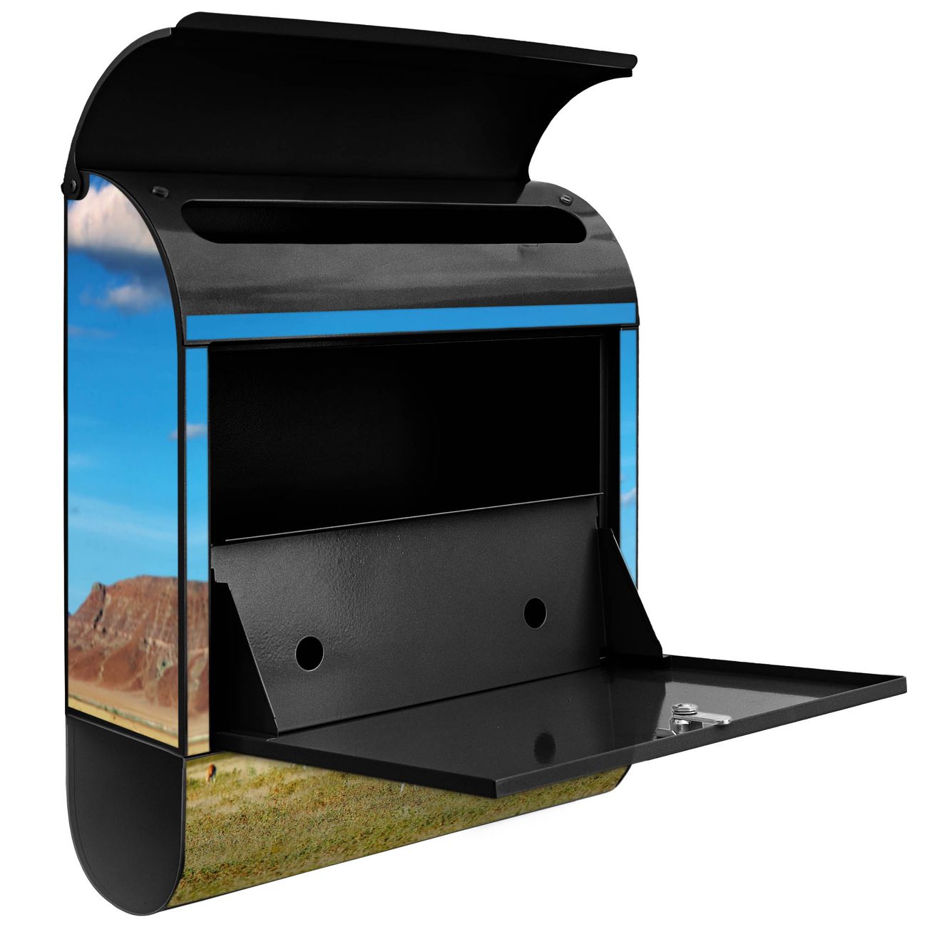 Der Standbriefkasten besteht aus pulverbeschichtetem Stahl und ist insgesamt ca. 161,5 x 47 x 16 cm groß. Das Motiv wird auf eine wetter- und UV-beständige Folie aufgebracht und mit einem robusten Schutzlaminat versiegelt. Damit bleibt die Farbbrillanz auch bei Sonne und Regen lange erhalten. Für einen sicheren Halt empfehlen wir, den Standbriefkasten mindestens 15 cm einzubetonieren. Jeder Briefkasten wird in Sachsen in einer kleinen Manufaktur von Hand veredelt - Sie erhalten ein Stück langlebige Handarbeit, das Funktionalität und Design vereint.