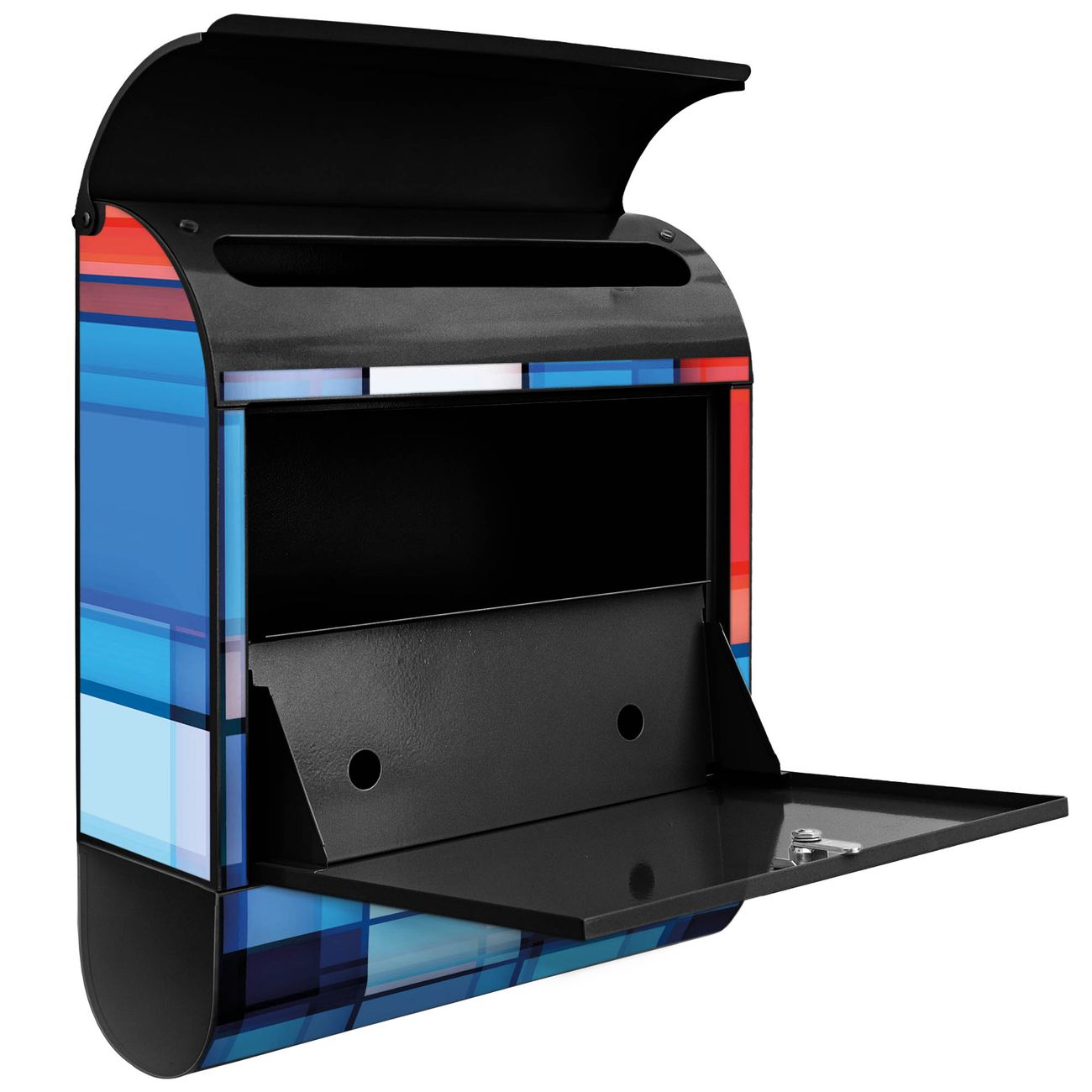 Der banjado Standbriefkasten mit Motiv Motiv Gläserne Stadt kombiniert großzügigen Stauraum mit modernem Design. Durch das geräumige Fach finden auch große A4-Sendungen problemlos Platz. Die integrierte Zeitungsrolle sorgt dafür, dass Tageszeitungen und Magazine separat und griffbereit untergebracht sind. Der pulverbeschichtete Standfuß ist farblich passend zum Briefkasten gestaltet und sorgt für ein stimmiges Gesamtbild. Mit dem individuellen Motiv setzen Sie einen optischen Akzent, der sowohl praktisch als auch dekorativ ist.