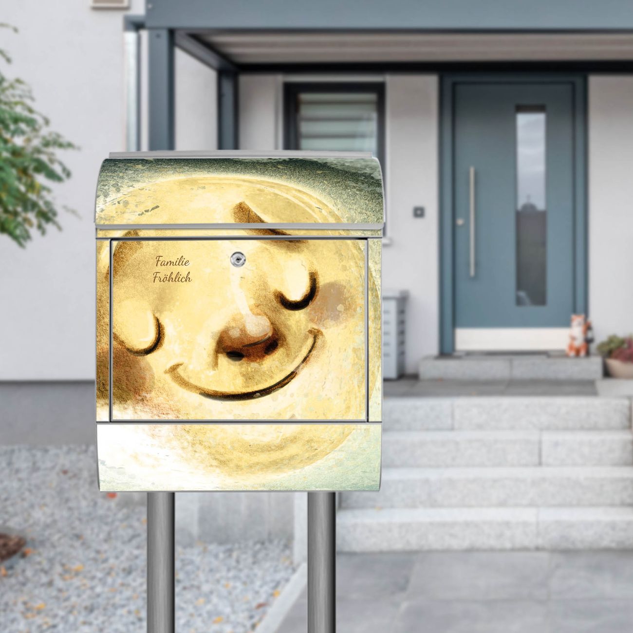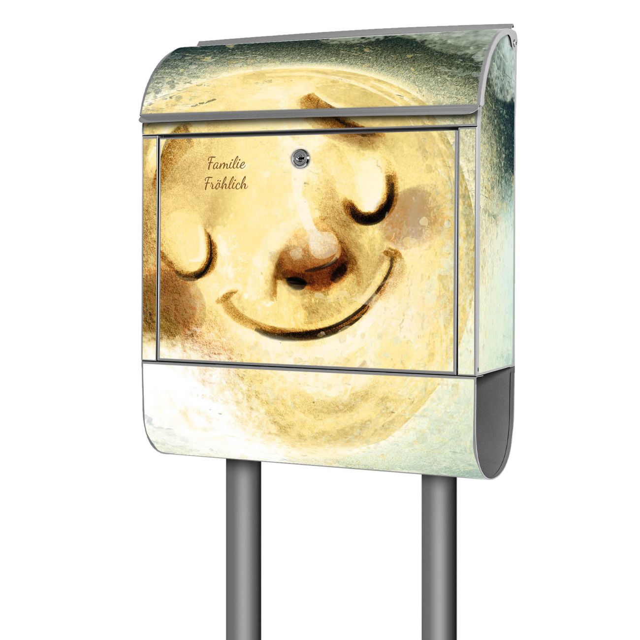 Der banjado Standbriefkasten mit Motiv Motiv Glücksmond kombiniert großzügigen Stauraum mit modernem Design. Durch das geräumige Fach finden auch große A4-Sendungen problemlos Platz. Die integrierte Zeitungsrolle sorgt dafür, dass Tageszeitungen und Magazine separat und griffbereit untergebracht sind. Der pulverbeschichtete Standfuß ist farblich passend zum Briefkasten gestaltet und sorgt für ein stimmiges Gesamtbild. Mit dem individuellen Motiv setzen Sie einen optischen Akzent, der sowohl praktisch als auch dekorativ ist.