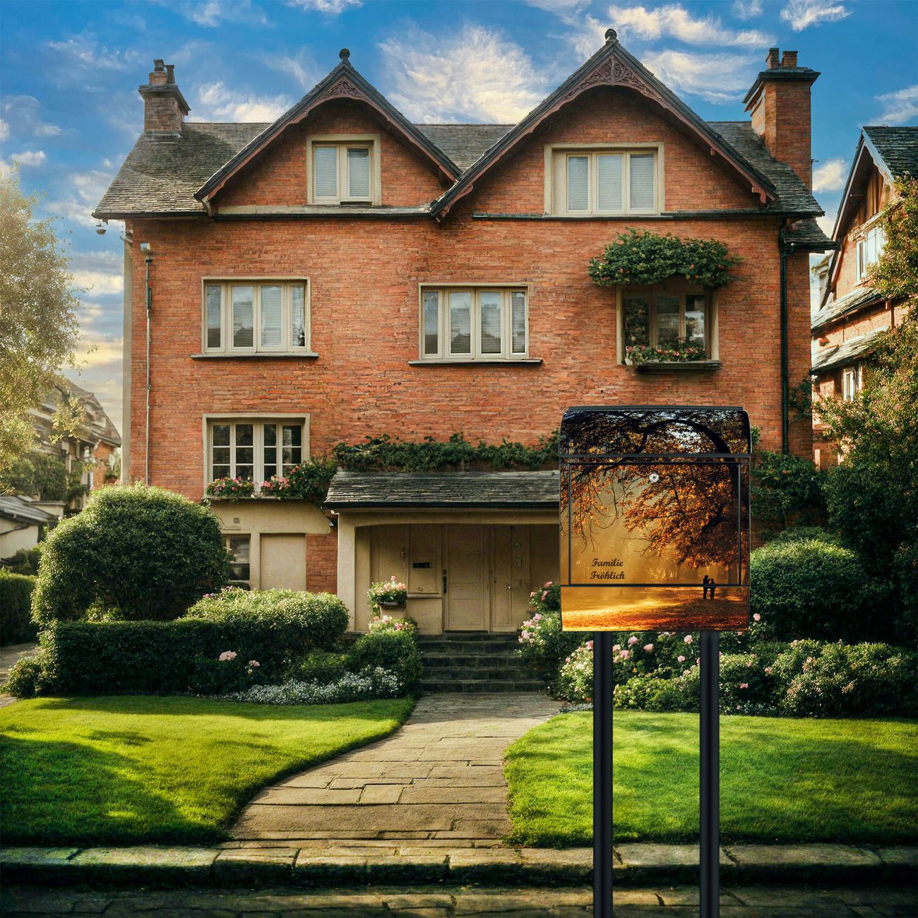 Der Vorschau-Text Familie Fröhlich wird durch Ihren persönlichen Wunschtext ersetzt. Die Schriftart und Farbe bleiben gleich wie in der Vorschau.