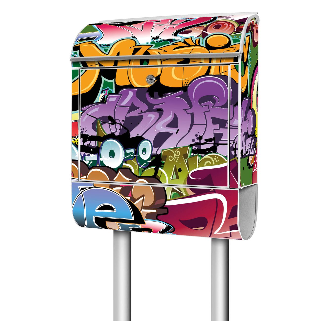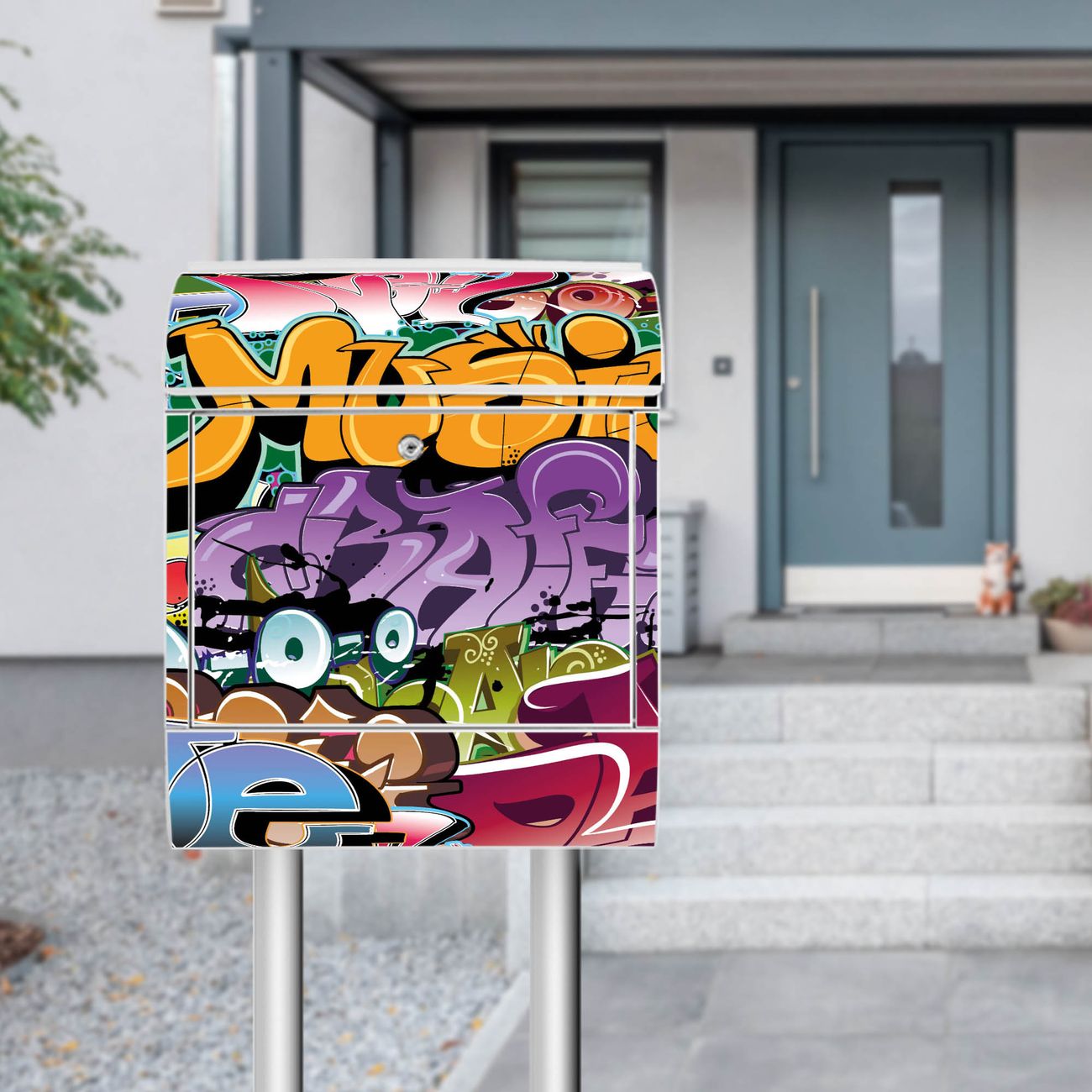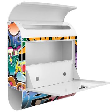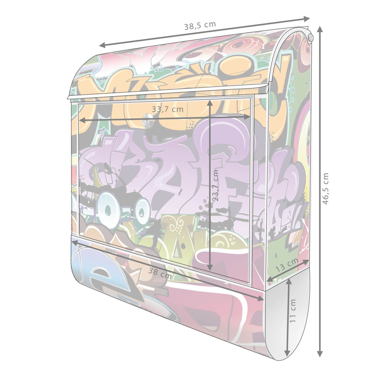Der banjado Standbriefkasten mit Motiv Motiv Graffiti kombiniert großzügigen Stauraum mit modernem Design. Durch das geräumige Fach finden auch große A4-Sendungen problemlos Platz. Die integrierte Zeitungsrolle sorgt dafür, dass Tageszeitungen und Magazine separat und griffbereit untergebracht sind. Der pulverbeschichtete Standfuß ist farblich passend zum Briefkasten gestaltet und sorgt für ein stimmiges Gesamtbild. Mit dem individuellen Motiv setzen Sie einen optischen Akzent, der sowohl praktisch als auch dekorativ ist.