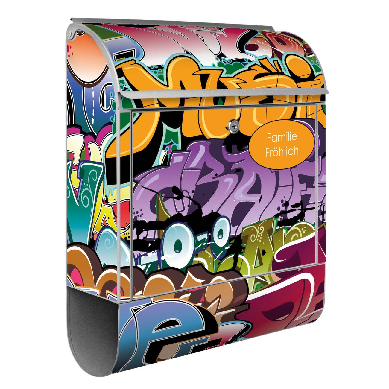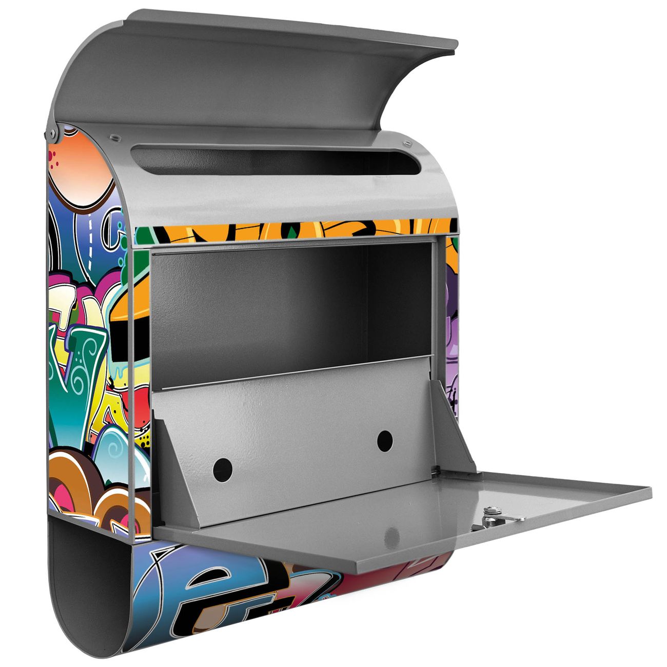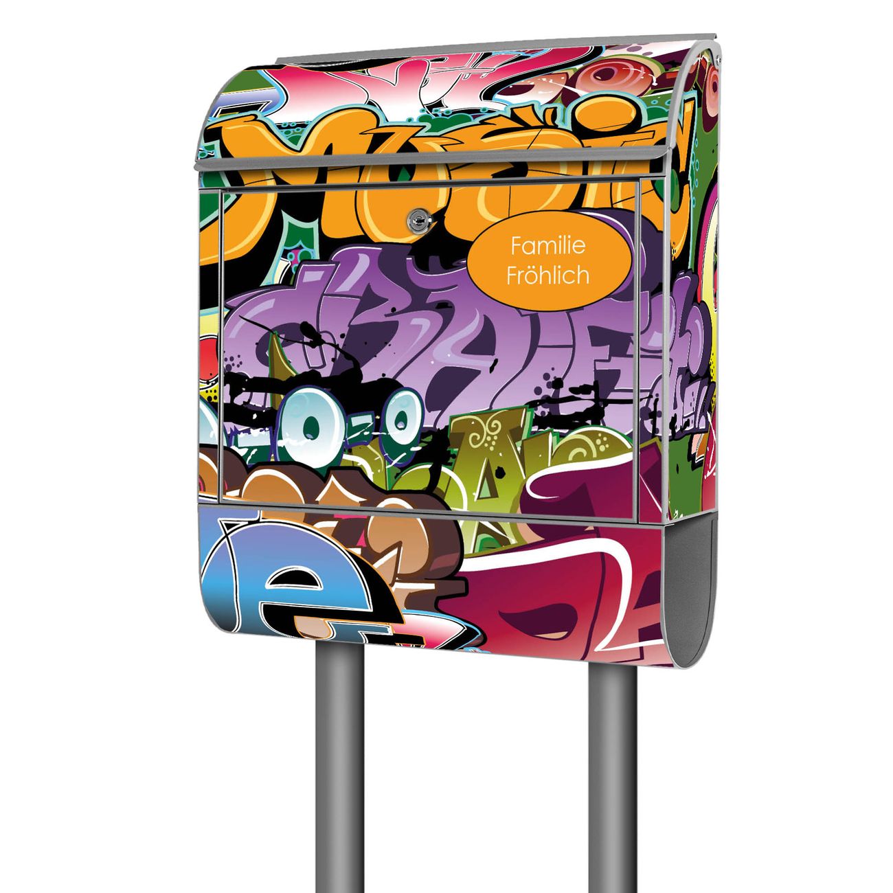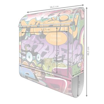 Der banjado Standbriefkasten mit Motiv Motiv Graffiti kombiniert großzügigen Stauraum mit modernem Design. Durch das geräumige Fach finden auch große A4-Sendungen problemlos Platz. Die integrierte Zeitungsrolle sorgt dafür, dass Tageszeitungen und Magazine separat und griffbereit untergebracht sind. Der pulverbeschichtete Standfuß ist farblich passend zum Briefkasten gestaltet und sorgt für ein stimmiges Gesamtbild. Mit dem individuellen Motiv setzen Sie einen optischen Akzent, der sowohl praktisch als auch dekorativ ist.
