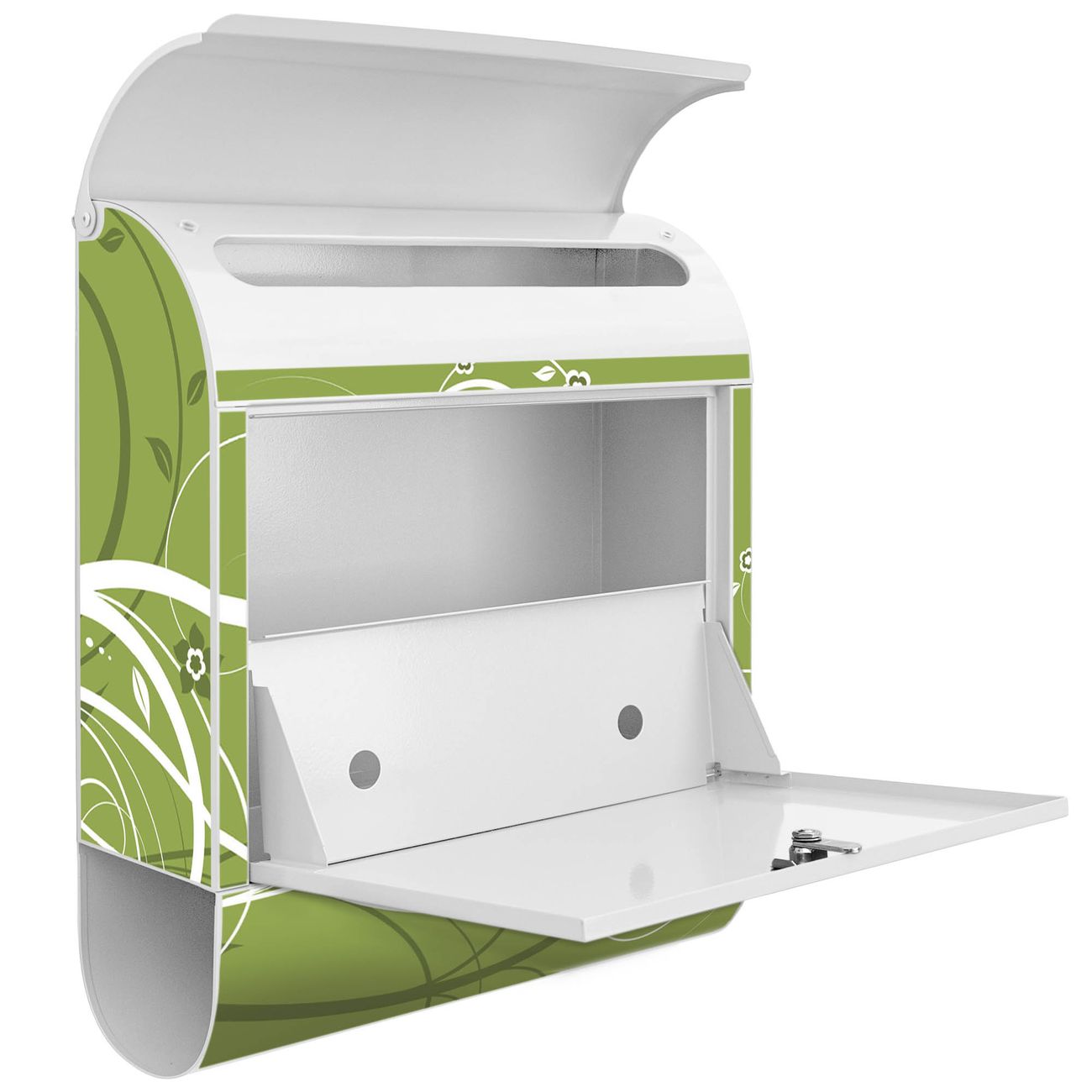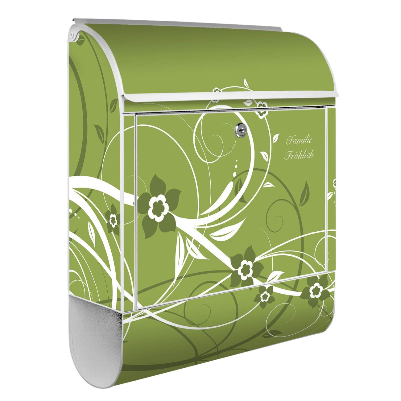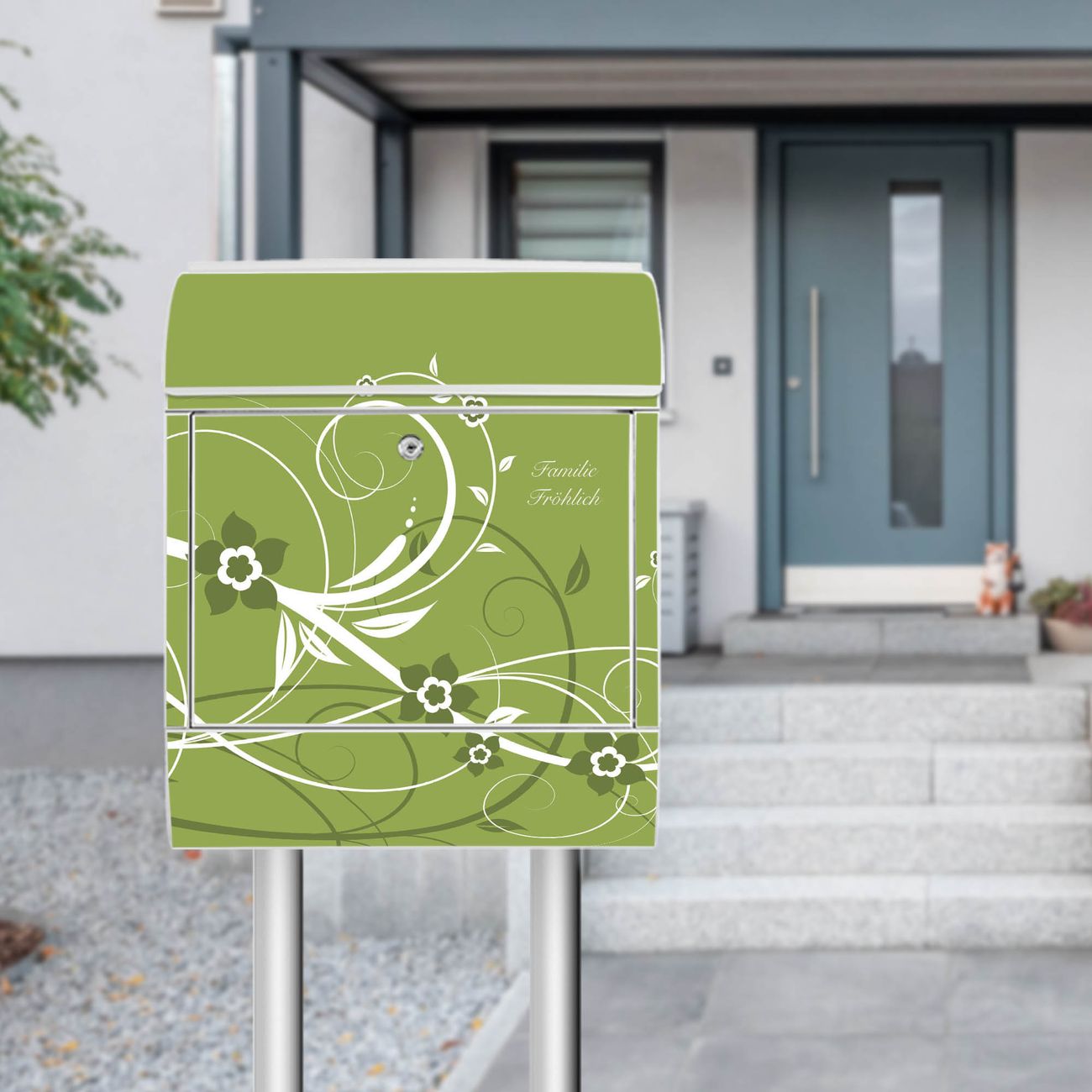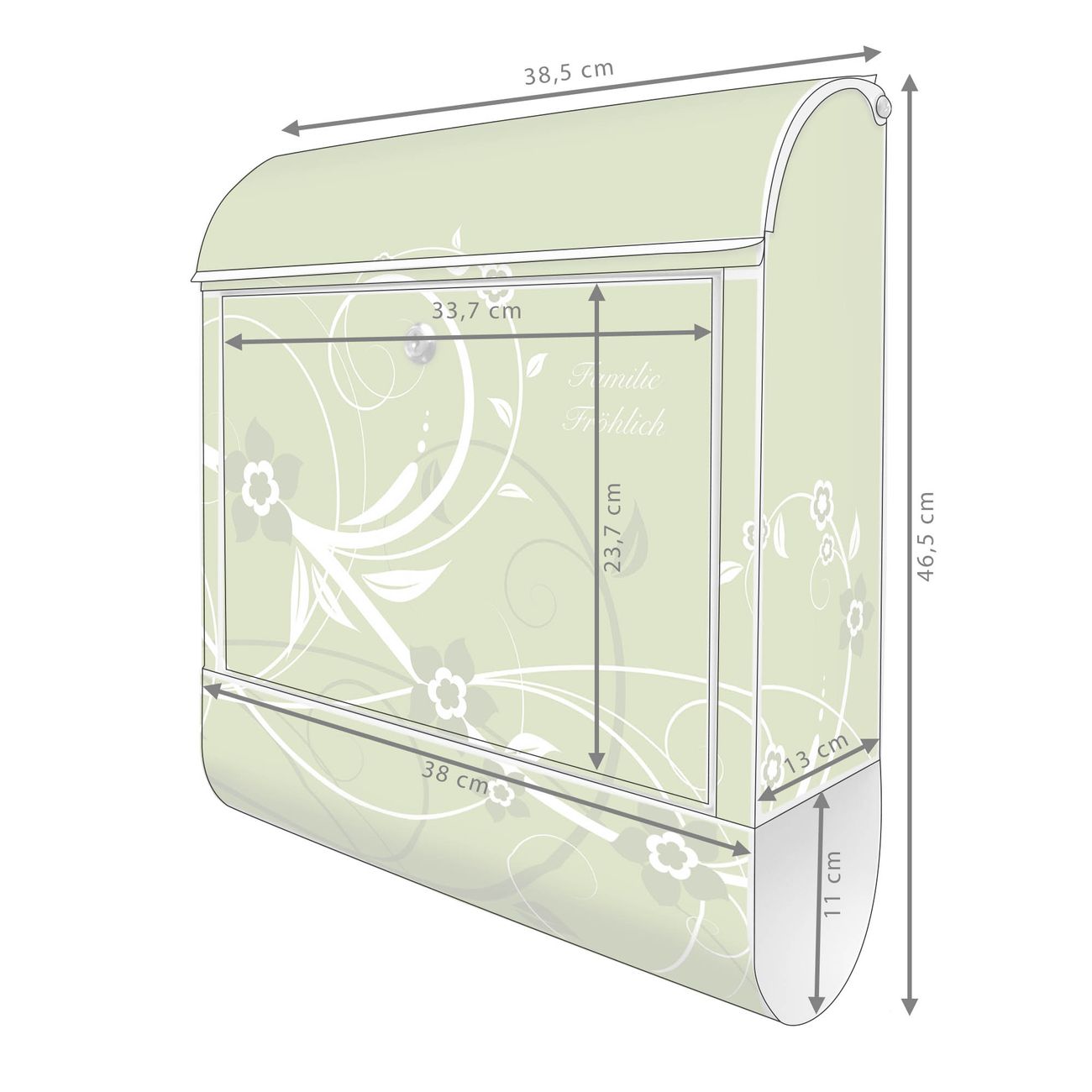 Der banjado Standbriefkasten mit Motiv Motiv Grüne Blüten kombiniert großzügigen Stauraum mit modernem Design. Durch das geräumige Fach finden auch große A4-Sendungen problemlos Platz. Die integrierte Zeitungsrolle sorgt dafür, dass Tageszeitungen und Magazine separat und griffbereit untergebracht sind. Der pulverbeschichtete Standfuß ist farblich passend zum Briefkasten gestaltet und sorgt für ein stimmiges Gesamtbild. Mit dem individuellen Motiv setzen Sie einen optischen Akzent, der sowohl praktisch als auch dekorativ ist.