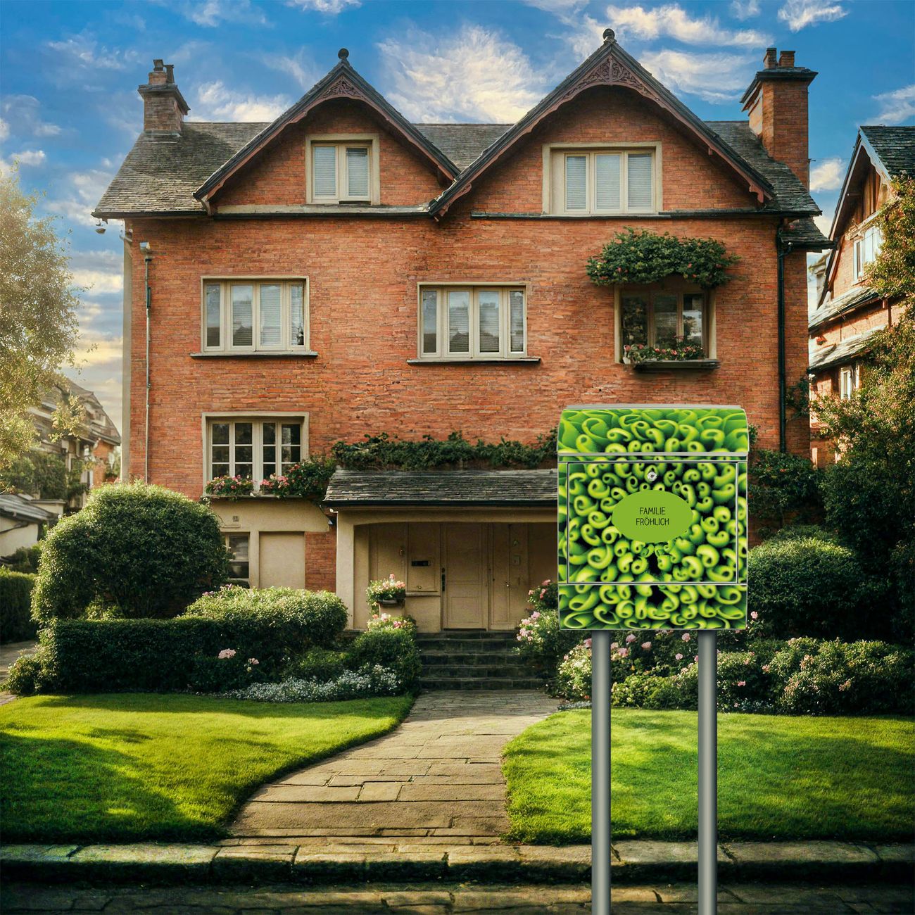 Der Standbriefkasten besteht aus pulverbeschichtetem Stahl und ist insgesamt ca. 161,5 x 47 x 16 cm groß. Das Motiv wird auf eine wetter- und UV-beständige Folie aufgebracht und mit einem robusten Schutzlaminat versiegelt. Damit bleibt die Farbbrillanz auch bei Sonne und Regen lange erhalten. Für einen sicheren Halt empfehlen wir, den Standbriefkasten mindestens 15 cm einzubetonieren. Jeder Briefkasten wird in Sachsen in einer kleinen Manufaktur von Hand veredelt - Sie erhalten ein Stück langlebige Handarbeit, das Funktionalität und Design vereint.