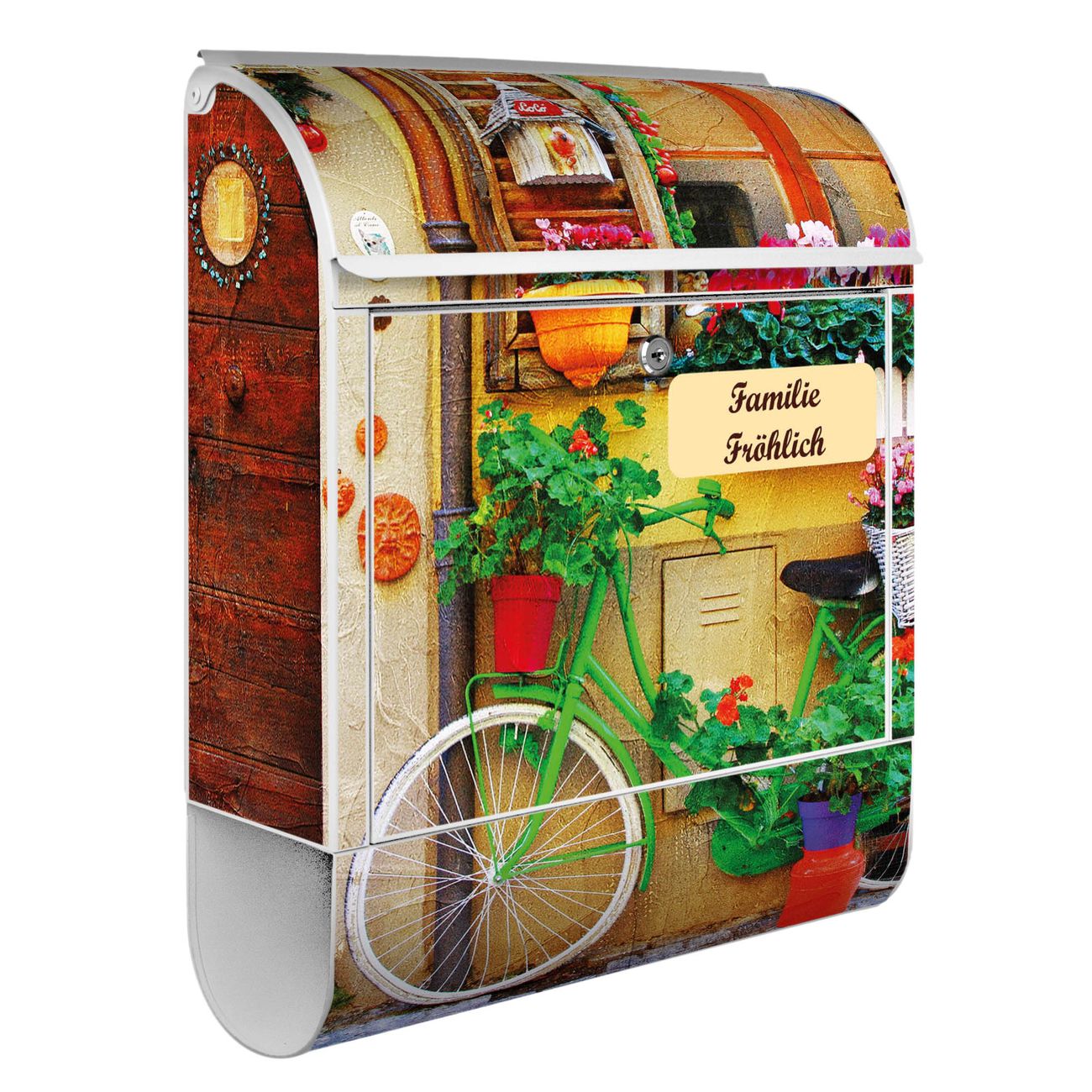 Der Standbriefkasten besteht aus pulverbeschichtetem Stahl und ist insgesamt ca. 161,5 x 47 x 16 cm groß. Das Motiv wird auf eine wetter- und UV-beständige Folie aufgebracht und mit einem robusten Schutzlaminat versiegelt. Damit bleibt die Farbbrillanz auch bei Sonne und Regen lange erhalten. Für einen sicheren Halt empfehlen wir, den Standbriefkasten mindestens 15 cm einzubetonieren. Jeder Briefkasten wird in Sachsen in einer kleinen Manufaktur von Hand veredelt - Sie erhalten ein Stück langlebige Handarbeit, das Funktionalität und Design vereint.