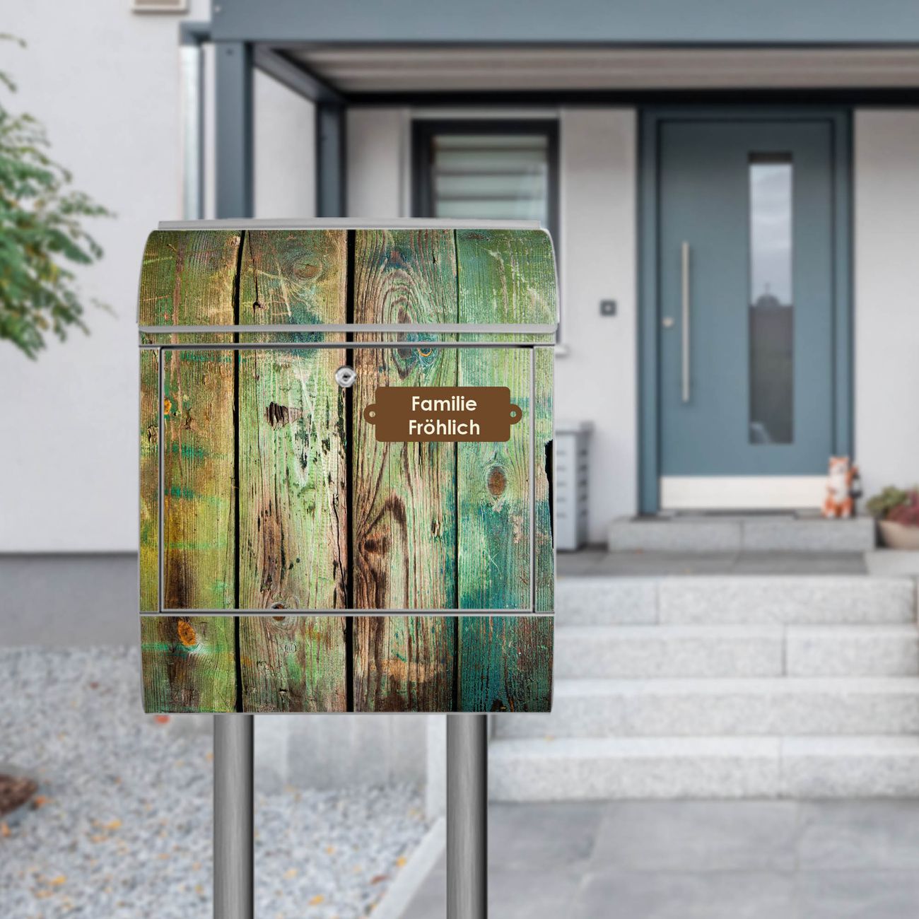 Standbriefkasten Stahl Grünes Holz