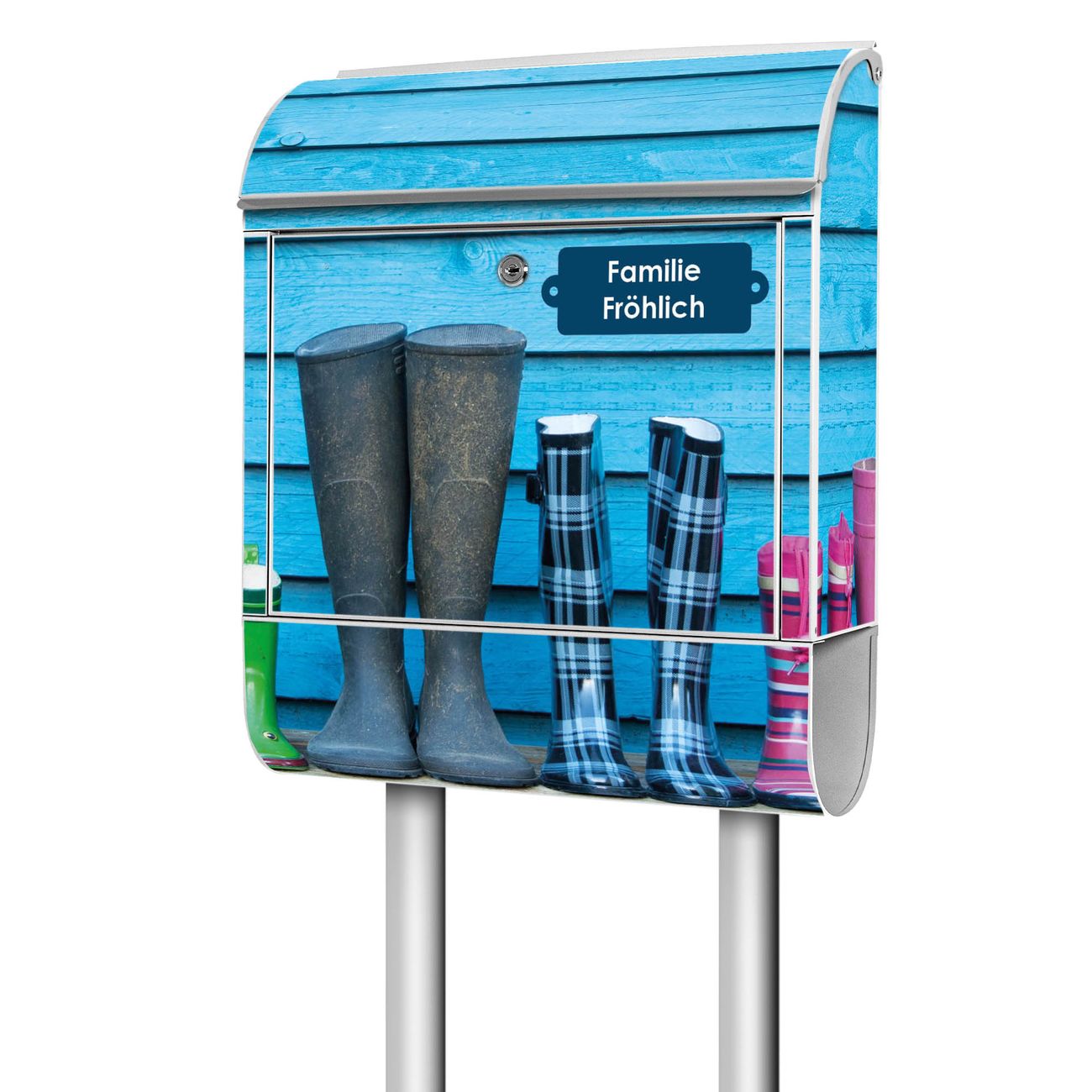 Der banjado Standbriefkasten mit Motiv Motiv Gummistiefel kombiniert großzügigen Stauraum mit modernem Design. Durch das geräumige Fach finden auch große A4-Sendungen problemlos Platz. Die integrierte Zeitungsrolle sorgt dafür, dass Tageszeitungen und Magazine separat und griffbereit untergebracht sind. Der pulverbeschichtete Standfuß ist farblich passend zum Briefkasten gestaltet und sorgt für ein stimmiges Gesamtbild. Mit dem individuellen Motiv setzen Sie einen optischen Akzent, der sowohl praktisch als auch dekorativ ist.