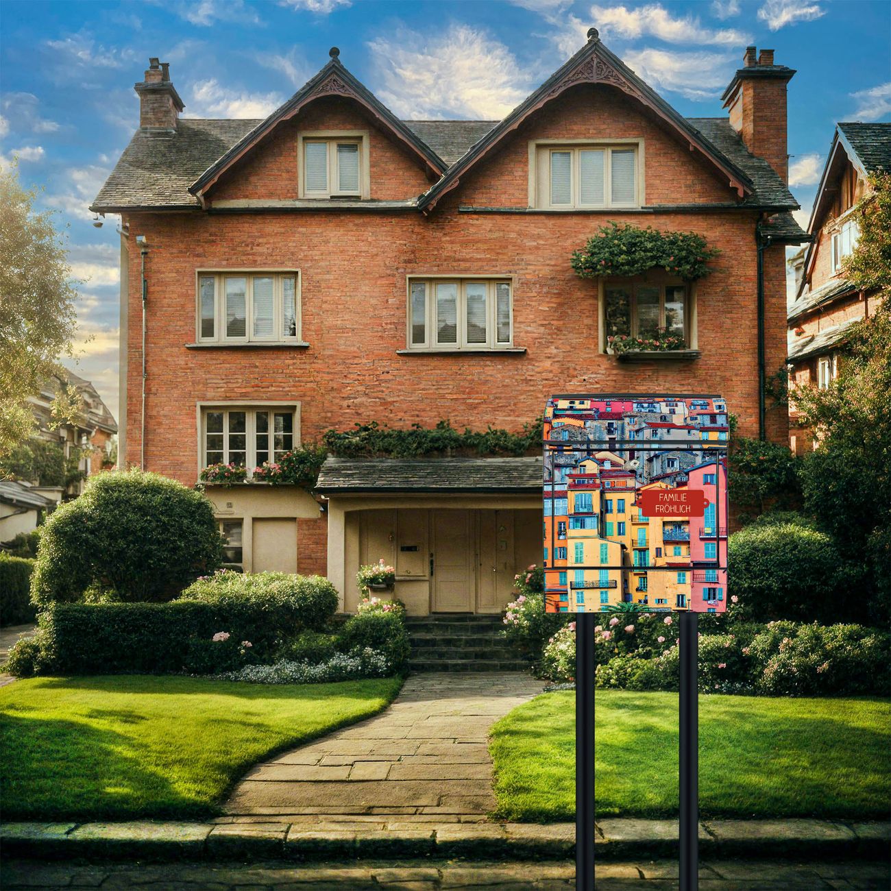 Der Vorschau-Text Familie Fröhlich wird durch Ihren persönlichen Wunschtext ersetzt. Die Schriftart und Farbe bleiben gleich wie in der Vorschau.